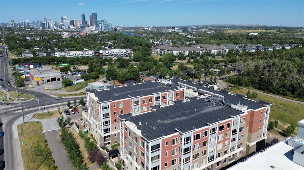 Discover a unique north-facing corner suite with STUNNIG views of the park, downtown and just steps to the river! This spacious 1,230 sq. ft. suite offers an exceptional floorplan with thoughtful design finishes. Enjoy open concept living in a "California" style split floorplan that ensures privacy and separation between the generous, well-appointed bedrooms. The large open kitchen features granite countertops, a breakfast bar, stainless steel appliances, mosaic tile, and ample cabinetry. This space flows seamlessly into the open concept living and formal dining room, complete with a cozy gas fireplace. The master suite is a true oasis, offering plenty of room to relax with a sunroom, a large walk-in closet, and a spacious ensuite with dual sinks, a soaker tub, and a separate stand-up shower. The second bedroom is equally large and opens to a north-facing sunroom. Grande House boasts top-tier facilities, including air conditioning as well as party/recreation rooms. The pathway system and Pearce Estate Park are just steps away, providing endless opportunities for outdoor activities. Eclectic Inglewood shops, conveniences, and the downtown core are a short bike ride away. Don't miss this rare opportunity to own a luxurious corner suite in Grande House. Book your showing today!