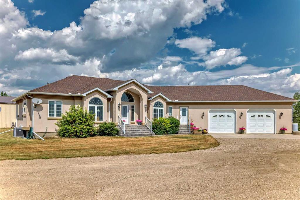 Visit REALTOR® website for additional information. This Aggressively priced acreage is within 50 minutes of downtown Calgary and is priced well below its assessed value. The executive style bungalow is custom designed and has all the bells and whistles one would expect and shows 10/10. Air conditioning, built in appliances, high end finishes, in floor heating, screened porch, and more closets and storage than one could ask for. The property is set up for horses with an outdoor arena, two paddocks, a waterer, and 4+ acres of hay or forage,but could easily adapt to a hobby farm with a good well and ample space for any critters and your ideas. The 40 x 80 foot drive through shop has 14 x 14 foot doors at each end and offers room for all the equipment or toys one would need in any endeavour. Got an RV? It can be stored away out of the elements and still have room for another! There is also a small shed with power that could be transitioned from a tack shed into a man cave or she shed.