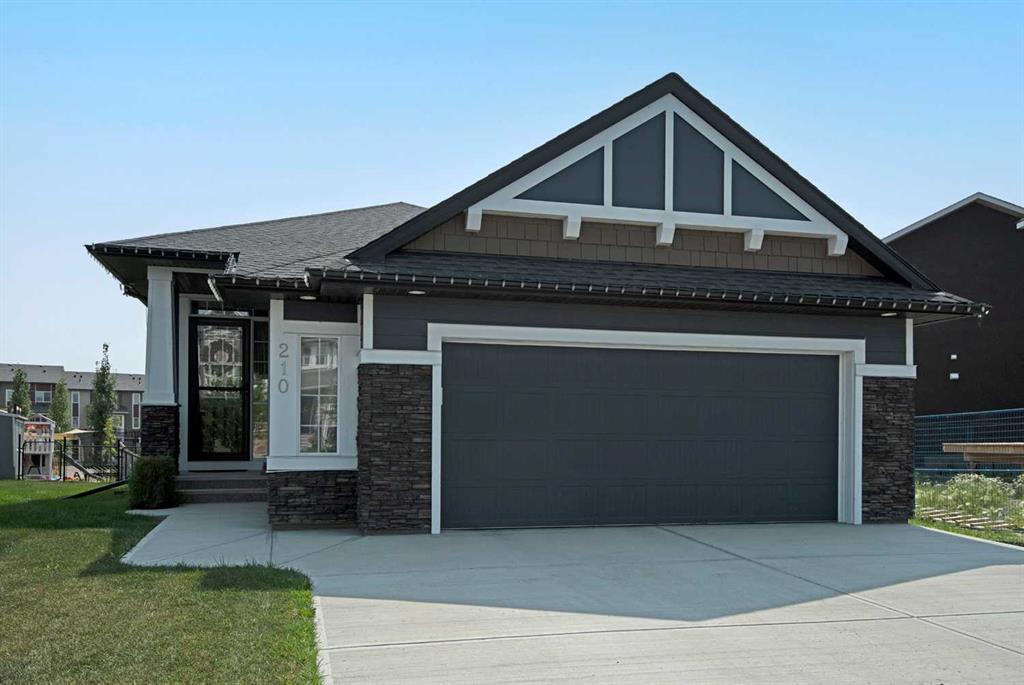 COME VIEW THE 3D TOUR & MORE - Click on the Multimedia/Virtual Tour Button! Immaculate and upgraded AIR CONDITIONED bungalow, backing to the walking path system in super popular Ranchers Rise at Air Ranch! Beyond the recently installed exterior screen door, step inside and admire the 10' ceiling that becomes a vaulted ceiling in the main living areas. Fabulous light fixtures enhance the feel of quality, as does the pristine engineered hardwood flooring that runs through much of the main level. Cozy living room has a feature gas fireplace with floor to ceiling stone. The dining area is huge and is open plan with the dream kitchen, which has white perimeter cabinets and darker tone pot and pan drawers under the island. Granite countertops galore - there's no shortage of food preparation space here! High end Kitchen Aid, Faber and Wolf appliances! The Primary bedroom is an absolute delight, can easily accommodate a king size bed and has a sliding glass door that leads out onto the deck. You will love the sumptuous 5-pc en-suite with its topmount sinks and the massive walkthrough closet that conveniently links to the laundry room! An upgraded half bathroom completes this level. Take the grand staircase down to the fully finished basement, where you will find near 9' ceilings! There's a massive family/recreation room with a wet bar and two large bedrooms, each with a walk-in closet. The 4-pc basement bathroom is also upgraded throughout. The utility room features masses of storage space and a new (Kinetico) water softener. Outside, you'll appreciate the massive full width and privacy screened deck (with a gas BBQ hook up) where you can enjoy the sunny South West exposure. The deck has steps down to the fully fenced and landscaped yard (complete with raised planters) that has a gate out to the walking path system. The HEATED and oversized (24' x 23') double attached garage has an area that could be used as a workshop. Terrific value here - Make it yours!