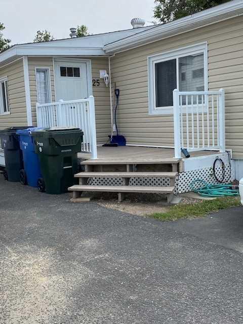 Beautiful Tower Estates mobile home on nicely landscaped lot. Three tier deck on sloping fenced yard. One deck partially covered. Spacious entrance with attached den that could easily be a third bedroom. New siding with an additional 2 inches of insulation, newer central air, new hot water tank, new flooring are just a few if the upgrades. 100 amp service and services under mobile have been arranged to prevent future issues and are now inside. Windows are vinyl, mirror closet doors, laundry in bath, two larger bedrooms, plus den, sculpted ceiling and door ways, three ceiling fans are all additional features. The asphalt driveway is newer and could host three vehicles or a small RV. The island kitchen has built in appliances and lots of cupboards. This home is light and airy and spotlessly clean. Ask your favourite Agent to bring you through.