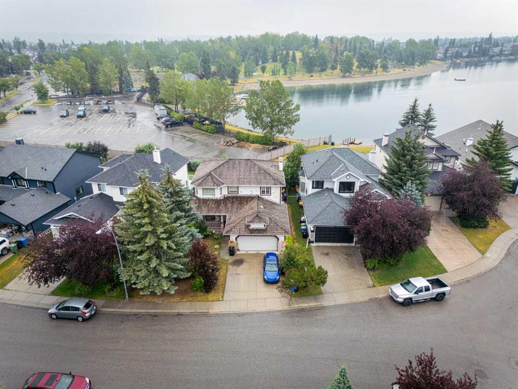 This spectacular million-dollar lake property with lake access features a covered front porch that leads into a spacious foyer showcasing a grand staircase. The cozy living room is adjacent to a private dining area, perfect for intimate dinners. The huge kitchen boasts granite countertops, a pull-out pantry, stainless steel appliances, and custom-built cabinetry. Magnificent lake views can be enjoyed from the main floor family room, which includes built-in wall units and a stone-surround fireplace. A bright and spacious nook leads to a deck offering wonderful lake views. The massive master bedroom features a walk-in closet and a luxurious ensuite with a jetted tub. There are three additional well-sized bedrooms, one of which could easily be converted into a media or bonus room. The fully finished basement includes two bedrooms, a full bath, and a cozy living room with a fireplace, adding warmth during the colder months. Additional features include central A/C, an oversized garage, and so much more. This property need TLC !