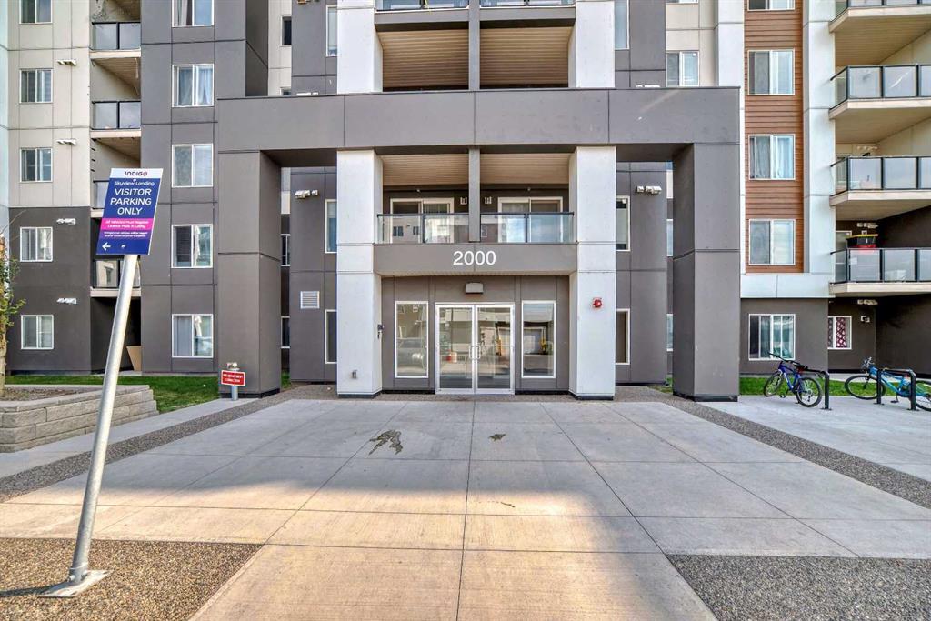 Discover modern living at its finest in this stunning main-floor corner condo in the heart of Skyview Ranch. With 2 bedrooms, 2 bathrooms, and a versatile den, this home offers ample space for both relaxation and productivity. Professionally measured 911.7 Sq Ft. as per RMS (Builders specs is 970 Sq. Ft. PINNACLE Model) Step into an open-concept kitchen featuring sleek stainless-steel appliances, a spacious kitchen island, and contemporary finishes. The airy floor plan seamlessly integrates the kitchen with the living area, making it perfect for entertaining and everyday living. Natural light floods the space through large NW-facing windows, complemented by a private patio equipped with a BBQ gas line – ideal for outdoor gatherings. The condo boasts easy-to-maintain LVP flooring throughout, ensuring both style and convenience. Plus, enjoy the convenience of in-unit laundry for added comfort. It has AC unit installed for hot summer days. This unit has a well-designed floor plan and nice size Foyer / Den to put extra items as well as tons of space in closet. Additional highlights include one heated underground titled parking space (#262) and a titled underground storage unit (#513). Residents also enjoy access to a fitness center, ample visitor parking, and nearby parks and green spaces. This prime location offers proximity to shopping centers like Chalo FreshCo and Costco, as well as two schools and the airport. With easy access to Metis Trail, Deerfoot Trail, and Stoney Trail, commuting and connectivity within the city are a breeze. Bus Stop is just one min walk and future 128 Ave LRT station in front of the building. Don’t miss this opportunity to own a beautiful home in a thriving community – perfect for first-time buyers and investors.