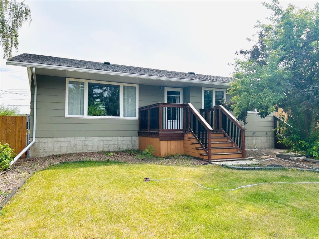Located on the edge of a quiet cul de sac, in Oyen, AB, is this 1080 square foot home. Located a short distance to playground, school, ball diamonds, and swimming pool and golf course. Featuring 4 bedrooms, 2 baths, and plenty of storage. Enter this home to a welcoming open concept layout. Kitchen has updated cabinetry, newer appliances, dining area and large pantry with modern style sliding doors. Living room is bright with a large north facing window adding natural light to the main level. The main level holds three bedrooms and a four piece bath with storage cabinet. Front north facing windows have all been updated including new storm doors on both entries. Flooring has been updated to tile and laminate. Basement is full and finished and enters into the family room. A bedroom can be located just off of the living space adjacent to a 3 piece bath. The utility room seconds as a laundry room with entrance to under stair storage with built in shelving. Basement also holds another large storage room that could be used as office space or bonus room. The side entry opens to a west facing privacy deck, with gas hookup for a bbq or a fire table. The back yard has been refaced from chain link to wood with a garden shed. The back yard slopes slightly with room to add your own landscaping. This home has been immaculately taken care of. Book a showing to come view your potential new home!