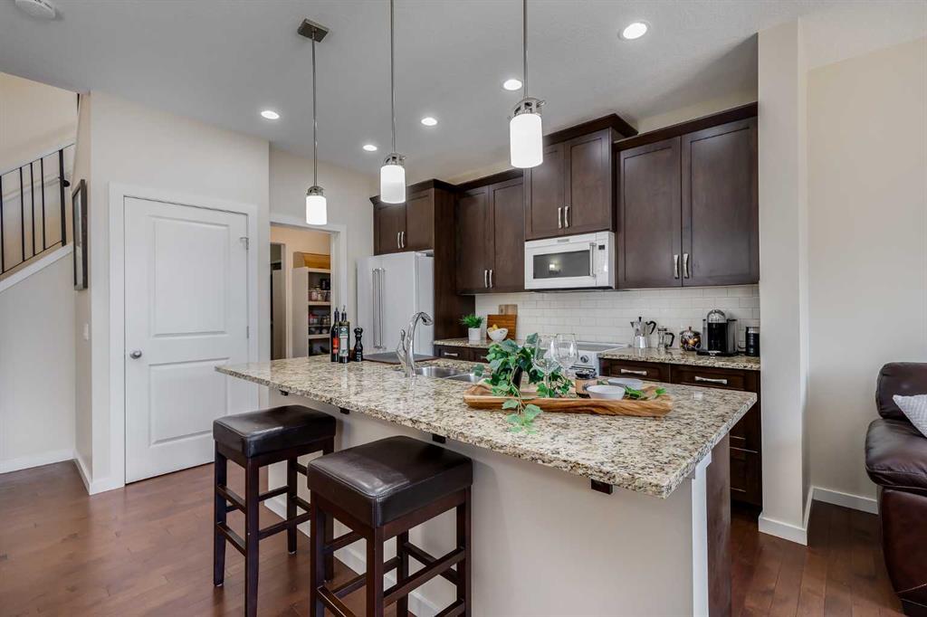 This charming two-storey home, featuring 3 bedrooms, 2.5 bathrooms, and a single attached garage, is located in the family-friendly community of Legacy. It offers over 1,600 square feet of developed living space. As you step inside, you’ll find a main floor that features beautiful hardwood flooring throughout. The open-concept layout, enhanced by large windows that flood the space with natural light, seamlessly connects the living, dining, and kitchen areas, creating an ideal space for both daily life and entertaining. The kitchen is a true highlight, boasting granite countertops, a large island with a breakfast bar, sleek white appliances, and a spacious walk-through pantry leading to the mudroom and garage. A convenient two-piece powder room is also located on this level. Upstairs, you’ll discover three comfortable bedrooms, including a large primary retreat. This serene space comes complete with a walk-in closet and a stunning ensuite bathroom that features dual sinks, a luxurious soaker tub, and a stand-alone shower. The upper floor also includes a laundry room for added convenience, making daily chores easier, along with an additional four-piece bathroom. Plush carpet flooring adds warmth and comfort to this level. The basement remains unfinished, providing a blank canvas for you to create the space that best suits your needs. Outside, the fully fenced backyard offers space for outdoor activities, complete with a deck, a gravel pad, and alley access with the potential for RV parking. Living in Legacy means being steps away from parks, Legacy Pond, and scenic walking and biking paths along the ridge. Golf enthusiasts will appreciate the proximity to Blue Devil, McKenzie Meadows, and Heritage Pointe Golf Clubs. For outdoor recreation, Sikome Lake and Fish Creek Provincial Park are just minutes away. The community is also conveniently located near a variety of shops and amenities, as well as All Saints High School. This property perfectly balances comfort, convenience, and the opportunity to make it your own.