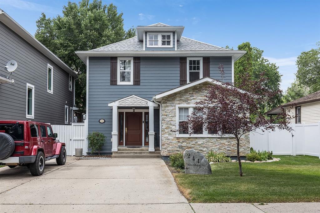It's summer, you're driving through one of Medicine Hat's oldest neighbourhoods and the trees around you create a canopy of green above the street. The homes around you are all beaming with character and originality, and then you pull up to 244 Aberdeen Street. Nestled on the SE Hill, you are only a few minutes from Historic Downtown Medicine Hat, shopping and some of the city's best spots for food + drinks are steps from your front door. This home is beaming with century-old charm , but has gone through all the major and extensive upgrades that you are looking for in a custom built new home. As you enter the home, you will be blown away by the way the home perfectly blends character and 100 year old design with luxury finishes. The home features 3 bedrooms all on the top floor, including your primary suite which has an unbelievable 4 piece ensuite, fireplace and private deck, the perfect spot to start and end your day. The main floor features large windows that help flood the area with natural light. You'll find tons of living space here, with a dedicated living room , sitting room and office space. The chef's kitchen has top of the line appliances and ample storage for everything you need to make your life in the kitchen a little more convenient. To finish, the basement needs to be seen for yourself. When you get to the bottom of the stairs you're transported to an old-timey hole in the wall pub with the exposed stone and natural wood beams and bar top. The yard has recently been finished with a beautiful stone patio , and access to your two separate garages to be used in any way that fits your needs. This home is truly spectacular and is a perfect example of photos not doing a home justice. It needs to be seen in person to be fully appreciated.