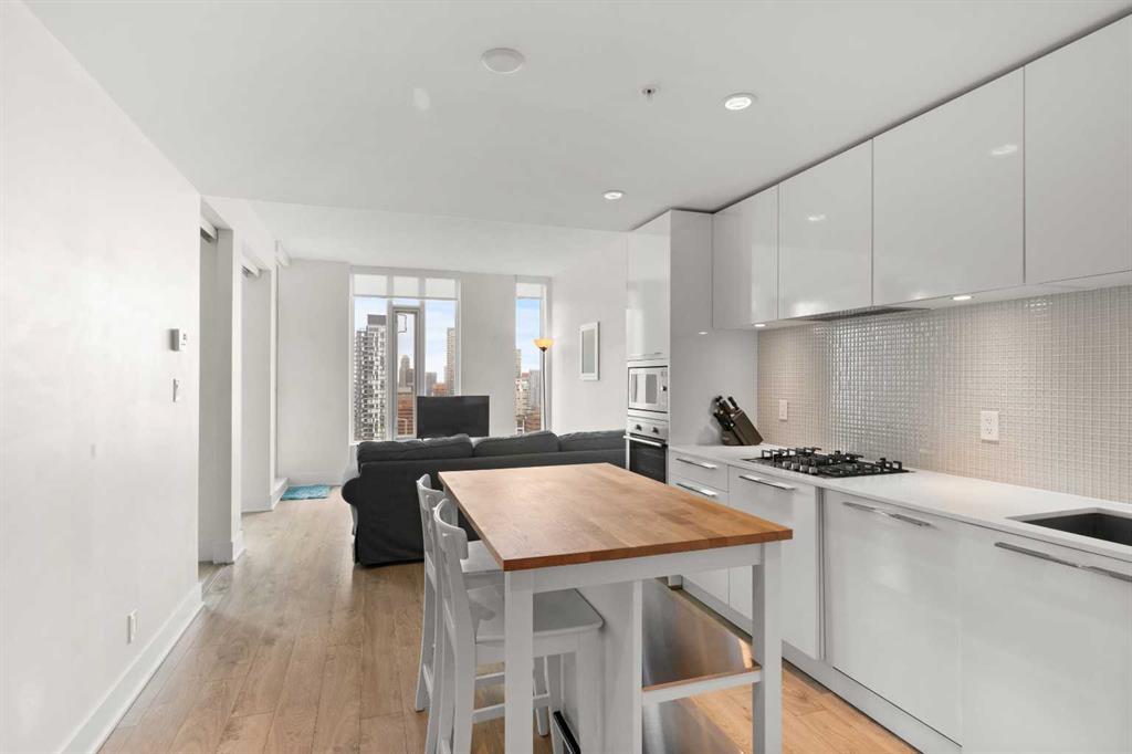 Experience urban living in this sleek condominium on the 22nd floor of MARK on 10th, where panoramic city views and abundant natural light set the stage for modern living. This unit features a thoughtfully designed layout with a stylish kitchen, inviting living room, 4pc bath, versatile den, and cozy bedroom. Step outside from the living room onto the deck to enjoy the stunning cityscape. The unit boasts contemporary flooring, high-end appliances, and elegant quartz countertops. It also includes a titled underground parking stall and assigned storage space for added convenience. Elevate your lifestyle with exceptional amenities on the 34th floor, including an outdoor hot tub, a vibrant entertainment area with sun loungers, and a comprehensive fitness facility complete with a yoga studio, sauna, and steam room. Enjoy recreational options like a game room, media center, and owners lounge, along with a serene guest suite and a tranquil courtyard on the third level. Concierge services are available to enhance your living experience. Situated just a short walk from shops, restaurants, and the L.R.T, this unit combines modern living with the vibrancy of city life. Well maintained and ready for immediate occupancy, this property presents an excellent opportunity for your next home or investment.