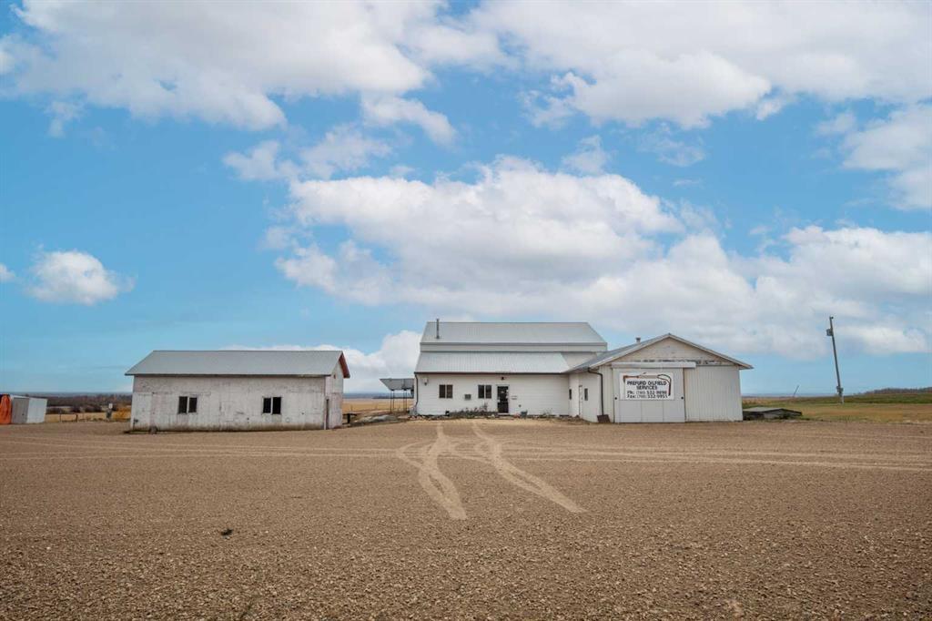 9.81 ACRES OF PRIME HIGHWAY FRONTAGE WITH LARGE SHOP, GARAGES AND COVERALL BUILDING! This property is completely turn key and the possibilities are endless. To start with the yard, at almost 10 acres of highway frontage, is completely secured with fence around, and 2 large rolling gates. Yard is gravelled, with solid hardscapes through out. Property Features a large 5000 sqft shop, that is perfectly set up for a welding shop, fabrication, auto body, mechanical, pipeline, and so many more possibilities. Shop features main shop area + additional bay, parts/storage rooms, spray room + a fully furnished office. Property also features 2 additional storage garages + large coverall building. Fully turn key as is, many subdivision possibilities, or keep existing shop setup and build a new one down the road. So many possibilities on a very RARE highway frontage location!