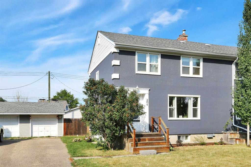Nestled on a tranquil, tree-lined street in the family-friendly community of Springbrook, this charming half duplex blends the quality of the past but with recent updates. The perfect starter home, it boasts a bright kitchen upgraded with maple cabinets, a previously, renovated main bath, new windows, water tank and fresh light paint throughout. The original maple hardwood floors add a touch of classic elegance to the home. The main floor is bathed in natural light, offering a sunny living room and a well-sized dining area that opens onto a back deck and a spacious, fenced yard. The upper level houses three bedrooms, while the basement's perimeter walls are insulated and boarded, awaiting your creative development ideas. Completing this appealing property is a detached 12 x 22 garage for parking or a great workshop. Springbrook itself is a family haven, with playgrounds, walking trails, and a general store. It is conveniently located just minutes from Red Deer and even closer to Penhold, which offers a Regional Multiplex, a new full-service grocery store, a walk-in clinic, and a pharmacy. For added convenience, there is also transit service to Red Deer.