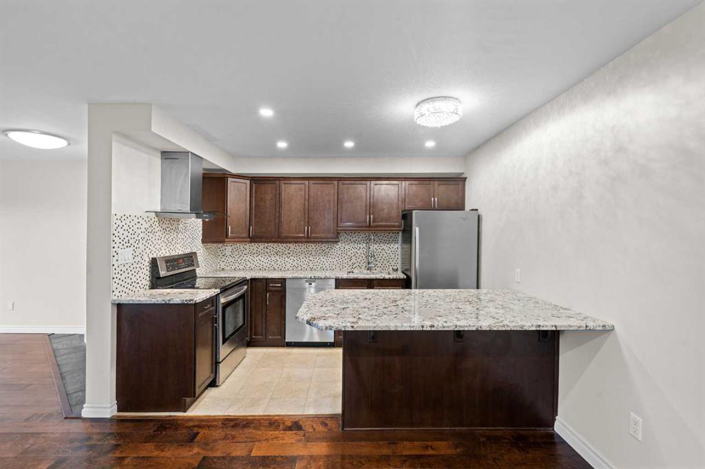 New Pricing in Effect. The value is here, move-in ready. This is a one-bedroom with plenty of upgrades and bang for your buck. The kitchen has been opened and a wall removed. A peninsula island was added with stainless steel appliances, newer cabinets, and granite countertops. Newer tile backsplash and new lights brighten the place adding the wow factor. The primary bedroom is a really good size and has closet organizers added. The bathroom has a new toilet, vanity and lights, floor tile, and wall tile. The tub has been reglazed. There is a large storage at the front entrance for all your needs, plus the condo management company has confirmed that you are able to install a washer and dryer (with accompanying permits, electrical, and plumbing) in the front storage room. NOTE: ONLY THE MAIN FLOOR is allowed to have a washer and dryer installed. The extra large private patio (15 ft X 23 ft) gives you dozens of possibilities for outdoor living and gardening. The building has been updated over the last few years including, new siding, balconies, windows, interior hallway carpet, and paint. There is an underground parade with one assigned stall. Very well maintained. Confirmation from the condo management company says that only the main floor can have in suite launder added to the storage room. It still must go through the approval process from condo management, and with proper plumbers and electricians (dryer must be non-vented). The laundry room unit is #108. The building is beside Thorncliff, right beside a green belt with walking pathways. The Thorncliff Community Centre is a terrific facility with skating, racquetball, pickleball, and a restaurant Call for your personal viewing. Some rooms have been virtually staged. NOTE; WATER HAS BEEN TURNED OFF FOR INSURANCE REASONS, PLEASE DO NOT USE ANY FACILITIES.