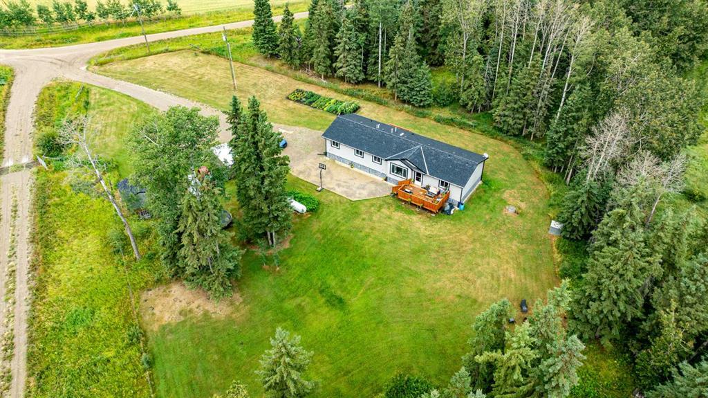 Country Living! Have you ever dreamed of quiet country living nestled in a peaceful setting? Welcome to this 9.71-acre oasis, located on a private road with no neighbors! This property proudly showcases a spacious open concept modular home with several upgrades including quartz countertops throughout, drywall, kitchen with large 2 tiered island and corner pantry, designated dining area with garden doors, customized ceiling, art niches, 3 bedrooms, 2 full bathrooms, separate family room and office! The primary bedroom is a relaxing sanctuary with spa-like ensuite, complete with a luxurious soaker tub, a separate shower, and a walk-in closet, ensuring a private retreat for relaxation. Beyond the primary suite, this home further impresses with 2 more bedrooms, separate family room, additional 4pc bathroom, large laundry / storage room, and office ensuring ample space for family and guests! The outdoor living space is equally impressive with both front and back decks for entertaining or relaxing. A fantastic garden, convenient shed and two firepit areas invite unforgettable moments under the stars. This property's location is truly unrivaled, situated west of Spruce View and mere minutes from Gleniffer Lake and the Raven River, placing nature's splendor at your doorstep. The enchantment of the West Country is easily accessible, with the school bus service extending right to your front door. For families Spruce View provides convenience, including a K-12 school, two restaurants, grocery store, hardware store, and a gas station, ensuring every need is within reach. Embrace the lifestyle you've always dreamed of, wrapped in the beauty and tranquility of country living. This is a unique opportunity to own a slice of paradise, where privacy, comfort, and nature converge!