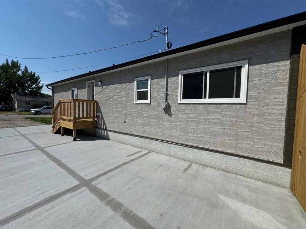 Discover this beautifully updated home just 35 km (28 minutes) from Lethbridge, located in the friendly and welcoming village of Stirling. Conveniently located 43 minutes from the Coutts Border and only an hour’s drive from the stunning Writing-on-Stone Provincial Park, this property offers both tranquility and accessibility for your family adventures. This move-in-ready home has been meticulously renovated from top to bottom, showcasing modern comforts while keeping it comfortable. Featuring three spacious bedrooms and a stylishly updated three-piece bathroom, this residence provides ample space for your family. The large living area is perfect for relaxation and gatherings, while the galley kitchen and adjacent dining room are ideal for meals and entertaining. An added bonus feature of this property is the convenient main floor laundry room, adding to your everyday ease. With two oversized gravel-to-concrete driveways, you have the flexibility to use one for side access to the yard, offering the potential to build your dream garage or shop (please confirm with the Village for specifics). Stirling is known for its safe, close-knit community and is ready to embrace you as their newest resident. Don’t miss out on the opportunity to make this beautifully renovated house your new home. Contact any agent today for a viewing and start your new chapter in Stirling!