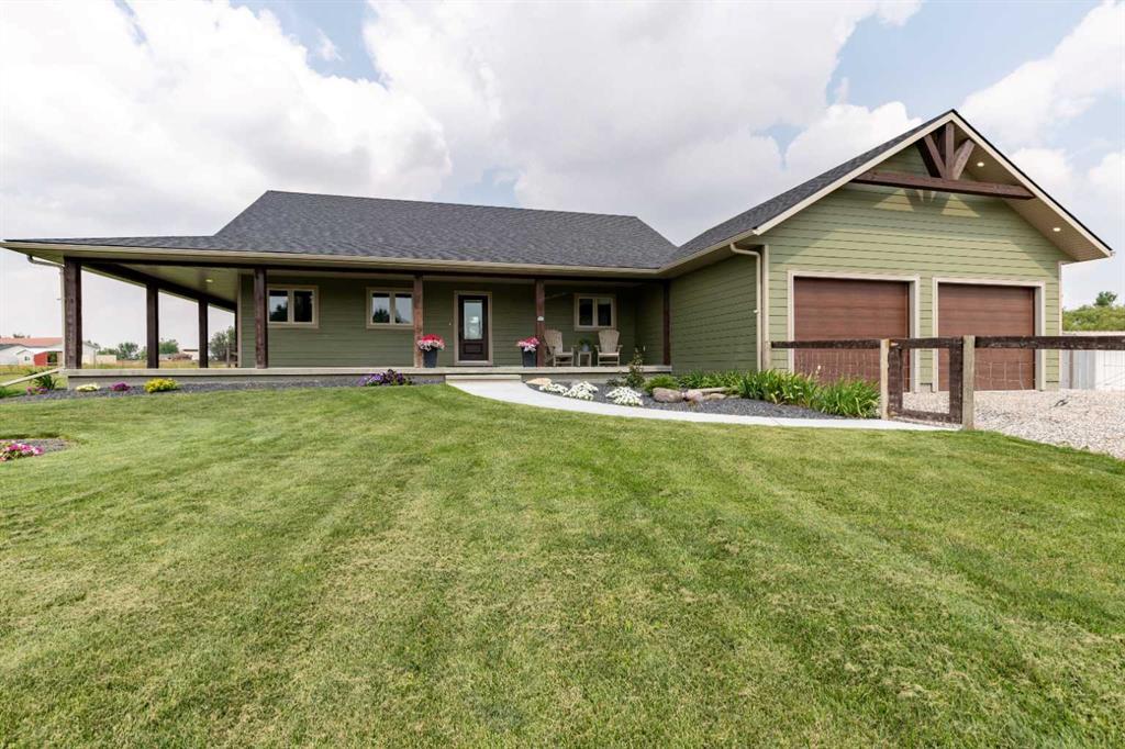 This stunning Orton acreage property has been custom-built with comfort in mind! Perfect for growing families, this home is brimming with convenient features like a mudroom, kitchen pantry, large heated garage, a charming wrap-around covered porch, and enough room to build a shop or barn in the future. The front entryway leads into an open concept living room, dining area, and kitchen, perfect for entertaining. The living room fireplace features beautiful brickwork, open shelving, cabinet storage, and a mantle for displaying pictures and keepsakes. In the kitchen, you'll find tons of cupboard space, a luxurious walk-in pantry, and a large central island which doubles as a breakfast bar. Down the hall, the primary bedroom suite is bright and restful with a four-piece ensuite bath and walk-in closet. Nearby, a smaller bedroom would make an ideal nursery or home office. The mudroom, laundry room, and main-floor bathroom can all be found near the entrance to the attached garage, creating an ideal layout for mechanics and hobbyists. Four more bedrooms, a five-piece bath, and a large rec room are featured on the lower level, providing space for the whole family. All this on 1.88 acres of fenced land, complete with well-maintained landscaping, outdoor seating areas, garden plots, an included play set, and a quiet neighborhood within driving distance of Lethbridge and Fort Macleod. If a turn-key acreage home sounds like the perfect place for you, give your REALTOR® a call and book a showing today!
