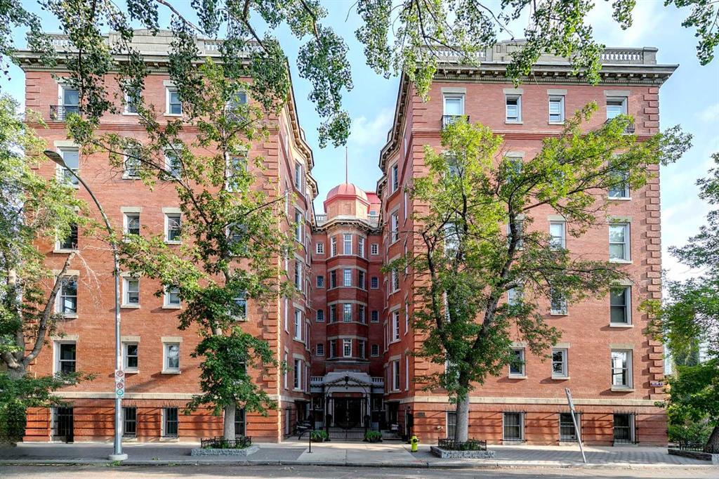 Welcome to Unit 302 of Anderson Estates, a beautiful heritage building with a rich history offering unique inner city living! This 1 bedroom unit features beautifully refinished original maple hardwood floors, 10' ceilings, 6' windows, built-in antique hutch & telephone table, dark stained 12" wide-oak baseboards and artwork ledges throughout. The entry way has been finished with a built in bench with coat hangers, storage and closet. The kitchen offers new porcelain tile floors, tile backsplash, granite counter tops, maple full height cabinets, and full appliance package including an all-in-one laundry. The bathroom is adorned with new porcelain tile floors and 1/2 walls and the original claw foot soaker tub has just been refinished! A built-in armoire, desk & bed with bookcases and storage in the primary bedroom has maximized this living space. The living room on the other side of the unit has a pass through from the kitchen and 2 big windows maximizing natural light. The building is quiet concrete construction and has concierge service Monday-Friday 9:30-5:30. There is a shared court yard with conversation seating to enjoy all summer including movie nights and resident social gatherings. Permit parking is available through the City of Calgary for $45/year, 1 per address; there are also a parkade at Shoppers Drug Mart that is next store to the building. Amenities include an assigned storage locker, bicycle stalls for $100/year lease rate and a BBQ and fire table for resident use. The building is pet friendly. Steps to trendy 17th Ave with all amenities within walking distance! Whether you commute or work from home, this is the perfect unit for anyone looking for a warm & classic living space mixed with the bustle of inner city! *Note - All furniture is negotiable. Professionally re-upholstered, the living room furniture is from the same time period as the Anderson.