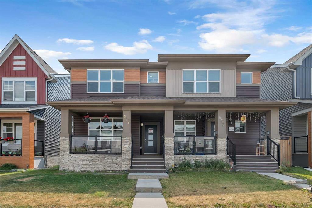 CORNERSTONE | DUPLEX | 1576.48 SQ. FT. | BASEMENT SIDE ENTRANCE | FULLY UPGRADED | FENCED | SUNNY SOUTH BACKYARD | NEAR SCHOOL BUS STOP . Seize the exceptional opportunity to own this beautiful DUPLEX , a perfect blend of modern elegance and functional design, nestled in the highly sought-after Cornerstone community. ** Near From the Future CBE Cornerstone School ** Beside the Soccer Playground ** Near Chalo FreshCo Plaza ** Welcome to 679 Cornerstone Way , a VERY WELL MAINTAINED PROPERTY waiting to be your next home. This 2019 Built duplex is fully upgraded with KNOCKDOWN CEILING , KITCHEN CABINETS , UPGRADED APPLIANCES, FLOOR and CARPET. The main floor offers a spacious living room, dining room, kitchen and half bathroom. The upper level offers 3 spacious bedrooms and 2 full bathroom, the primary bedroom features a walk-in closet , 3 pc ensuite bathroom. The upper level laundry is tucked into the hall closet to not take away any living space! Downstairs is an unfinished basement with a separate side entry ! Outside, the great backyard has a plenty of room for a dining set. The rear alley access plus street parking is readily available at the front of the home. The comfortable front porch is a bonus for a cool summer's evening when the kids are playing across the field. Check 3D tour and book a showing at this incredible home today!