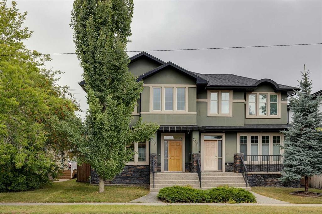Mount Pleasant - 708 20 Avenue NW: Welcome to this fully developed 2-storey home in the desirable community of Mount Pleasant. This turn-key home boasts a total of 4 bedrooms, 3.5 baths and over 2,700 sq ft of development, complete with central A/C and a detached double-car garage. The bright, open main floor has hardwood floors throughout; a kitchen with granite counters, an island providing extra work space and storage with a built-in beverage fridge, a pantry and stainless steel appliances; the central dining area has a beautiful tray ceiling and room for a large table. The south-facing living room has a gas fireplace with a stone front and mantle and large windows to let in lots of natural light. A 2 pc powder room and back entrance complete the main floor. The upper level features a spacious primary bedroom with a walk-in closet and 5 pc ensuite, including a separate shower and soaker tub; 2 additional bedrooms, a 4 pc main bathroom, and a laundry room with laundry sink and built-in cabinets for storage. The fully developed lower level has herringbone luxury vinyl plank. It includes a large family room, an area for a future kitchenette, a 4th bedroom, and a 3 pc bathroom with a beautiful tile shower with rain showerhead. Step out to the backyard with an exposed aggregate concrete patio and grassy area for the kids to play. Enjoy inner city living - within walking distance to Confederation Park, schools, St Joseph dog park, all while only minutes to 16th Avenue (Highway 1), downtown, SAIT, and U of C. Call for more info!