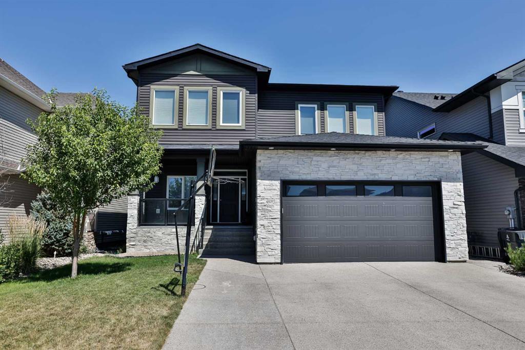 Welcome to your dream home in the stunning Riverstone community! This exquisite two-story residence backs onto a serene creek and lush green space, offering direct access to Riverstone Park. This home is fully developed with a spacious 3,000 sq. ft. on the main and second floors, complemented by a fully developed basement. The home features five generous bedrooms and three and a half bathrooms, providing ample space for family and guests. A dedicated office on the main floor, right of the front door that could be multi purposed space. There is a Large living space looking onto the green space that you can entertain the entire family in. Enjoy a covered deck that boasts a double-sided fireplace, seamlessly connecting the living room and outdoor deck space. The main floor includes a large dining and eating area, creating an inviting open-concept layout ideal for entertaining. The second floor features three bedrooms and a versatile medium room. The main bathroom comes equipped with double sinks and a five-foot tub with a tiled walls.The laundry room on the second floor offers extra storage and co nnects to a walk-through closet, leading to the en suite for added convenience.The en suite bathroom is a true retreat, featuring extensive countertop space, double sinks, a makeup table, and an oversized custom glass shower with shower rain head. Don't forget the large window letting in extra light!! The primary bedroom is designed for comfort and elegance, featuring a dropped tray ceiling with additional lighting, an MDF feature wall, and remote-controlled blackout blinds for ultimate relaxation. The kitchen is a chef's delight, featuring quartz countertops, abundant counter space, and ample storage. A stylish stainless steel hood fan adds a modern touch. This home combines functionality with luxury, making it the perfect sanctuary for your family. Don’t miss out on the opportunity to make this stunning property yours!