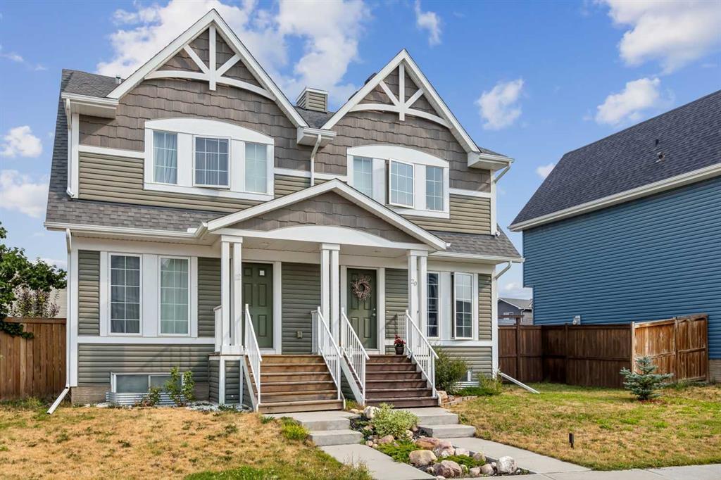 Great two storey home located in the desirable lake community of Auburn Bay! Located on a quiet street close to a park and minutes from schools, shopping and amenities. Nice tile entrance welcomes you into the open main floor with laminate flooring throughout. Nice and bright living room has a large window. Good sized kitchen, open to the living room, has quartz counters, loads of cabinetry, tiled backsplash, stainless steel appliances and a large eating area with a bay window. Upstairs you will find 2 bedrooms, each with their own 4 piece ensuite bathroom and walk-in closet. The open basement is fully developed with laminate flooring and a laundry storage room. Great property for a first time buyer.
