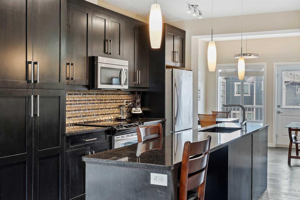 Beautiful 2-Bedroom Townhouse, located in the highly sought-after community of Mahogany. This townhouse offers a perfect blend of comfort, style, and convenience with the benefits of lake access. Residents can take advantage of the many year-round activities and amenities including the Lake and Beach Club. With its 63-acre freshwater lake, Private Beach club, 74-acre scenic wetlands, trails, parks, lots of shopping and schools this community has it all. Come have a look at this fantastic open concept three story FORMER SHOW HOME built by Jayman BUILT accompanied by nicely selected updates. Enjoy the large kitchen with granite countertops, expansive breakfast bar, ample kitchen cabinets complimented with sleek stainless steel appliances, full tile back splash, upgraded sil granite sink with Moen faucet and stylish pendant lighting. Entertain in the large living room with 9’ ceilings with over sized feature windows that invite an abundance of natural daylight in while still enjoying a designated dining area. upgraded half bath and private deck with BBQ gas line. A beautiful site line from front to back accented with rich hardwood flooring. Head up to the upper level where you will discover two Primary Suites, ideally located on opposite sides of the house ensuring convenience and privacy for all residents. Both have their very own private ensuite featuring two full four piece bathrooms. The South Primary has a fantastic walk-in closet with an interior window while the North Primary has a walk-though closet along with a classy hounds tooth feature wall. Returning back to the entry level you have a spacious foyer with custom niche for coats and boots right before you head into the DOUBLE ATTACHED TANDEM GARAGE with 2 entry points. The latter being a garden door out to the quaint and private green space where you can sit and enjoy some peace and quiet. Additional features to this wonderful home include CENTRAL AIR CONDITIONING and an EXTENDED PARKING PAD FOR A THIRD VEHICLE. Visitor parking kitty corner to your home and an awesome playground on site for the kiddos. Located steps to two schools, soccer field, purple playground and plethora of walking and biking trails, this home is a take off point for home ownership, especially in such a wonderful Lake community. Quick access to 52nd, Stony Trail and Deerfoot along with all of the offered amenities such as shopping, restaurants, Lake activities and community events make this a perfect choice. Welcome Home!
