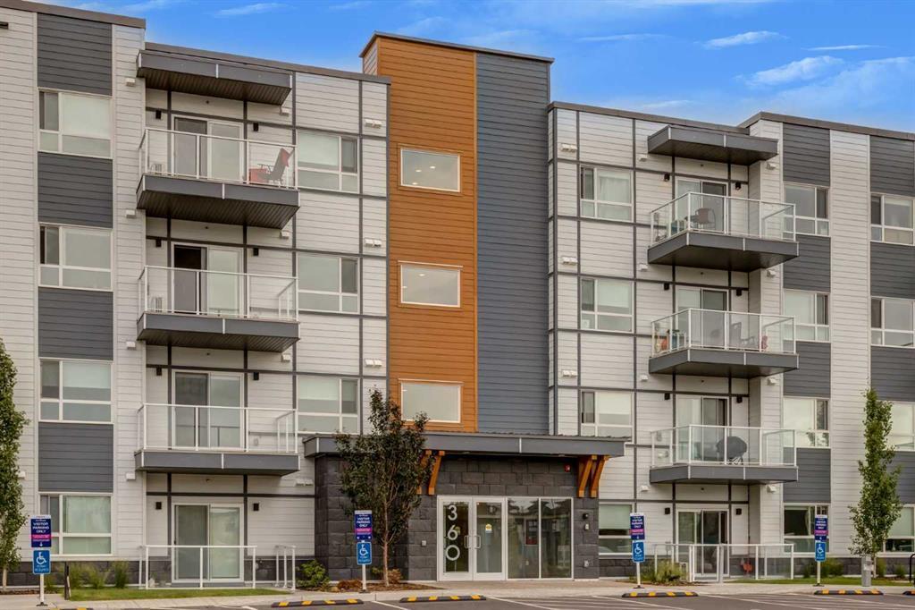 Maintenance free living at its finest in this meticulously cared for 2 bedroom condo nestled in the Parks of Harvest Hills. Beautiful finishes throughout featuring vinyl plank flooring, chic light fixtures and an open floor plan with a chef's kitchen equipped with quartz countertops, stainless steel appliances, pantry and over-sized center island with eating bar with easy transition to the living room where you will find access to the WEST facing balcony. The spacious master bedroom offers a 4 piece ensuite bathroom with dual sinks complete with a standing shower and a walk-in closet. A second bedroom (also with walk-in cloet), 4 piece bathroom and generously scaled laundry/storage room complete this unit. Don't overlook the Titled parking stall and additional storage cage. Beyond the confines of your home, discover a vibrant community loaded with amenities (restaurants, shopping, rec center), a network of pathways as well as close proximity to schools, parks and public transit. Plus, enjoy the convenience of being under 10 minutes away from the Calgary International Airport. Don't miss out on the opportunity to call this modern condo your home!