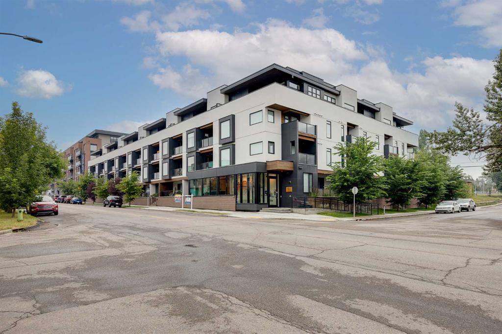 Stylish and functional kitchen features beautiful quartz countertops and designer backsplash, huge Island with attached table extension, upgraded lighting and corner pantry with pull out shelves, high-end Kitchen Aid Appliances which includes a gas range and hidden hood fan. The Primary Suite has a huge window that overlooks the balcony, a spacious walk-in closet with closet organizers and spa like ensuite with tiled walk-in shower, ceramic tile floors and quartz counter top. The additional bedroom/den is the perfect home office and provides extra privacy for today’s work at home environment. The main four-piece bathroom is located near the 2nd bedroom, is spacious and to the same standards as the rest of the home. The laundry allows for a full-size stacked washer and dryer and is across from the front entry coat closet. Many other features include a titled parking stall just across from the stair door in the heated underground parking, a good size (3ft x 8 ft approx.) secure storage unit, a guest suite which can be rented, visitor parking in the underground parking, secure bike storage, a dog wash station, electric car charging station, a workout area/yoga studio, a courtyard and water bottle filling station and much more. There is so much to enjoy in this great Inner-City community of South Calgary and Marda Loop, the South Calgary outdoor pool, Parks and playgrounds only steps away from home: sports fields for volleyball, tennis courts, soccer, skating rink, bicycle track, picnic area and lots of green space. Located in a very walk able community, you have everything you need just minutes away, Calgary Public Library, close to Garrison, 17 Avenue, downtown Calgary and easy access to hospitals and major roadways. Public transit is very close by. Enjoy single level living in this secure, maintenance-free, lock & leave, exclusive building.