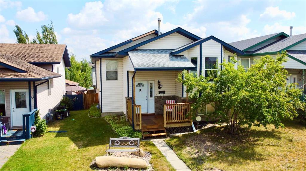 Welcome to this great starter family home situated on a crescent in Blackfalds, just a stone's throw from the Abbey Centre Rec Facility! This home has 4 bedrooms and 2 bathrooms, with 3 bedrooms conveniently located on the upper level. Step inside to discover a bright and airy kitchen, complete with an island, stainless steel appliances, and an abundance of countertop space. For added year-round comfort this home comes equipped with central air conditioning. Out back off the kitchen enjoy the overhang on the rear deck, providing ample shade and a great spot for outdoor relaxation. The walk-out basement features a fantastic rec room, perfect for family gatherings, and connects to a poured concrete deck with private area. Additional highlights include an oversized 25 x 27 heated double detached garage wired for 220, and a brand-new roof installed on the house in 2023. This home combines comfort, convenience, and style, all while being close to recreational amenities and set in a charming neighborhood.