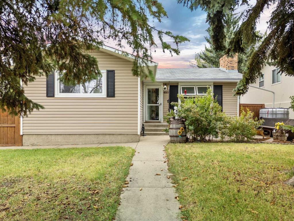 This beautifully situated Home could easily accommodate a 1 bedroom legal suite in the lower level, subject to City approval. Currently the main floor has a Spacious and open eat in Kitchen, cozy living room, 3 Roomy Bedrooms renovated 4 piece bathroom. The lower level features a large Family room with a wall to wall Brick facing, wood burning fireplace. The lot is a Gardeners Delight, pond with fish, oversized double Garage RV parking and much more. There are Schools available from Elementary to High School. Transit to the center of the city or to the U of C, playground behind the home for the children to play.