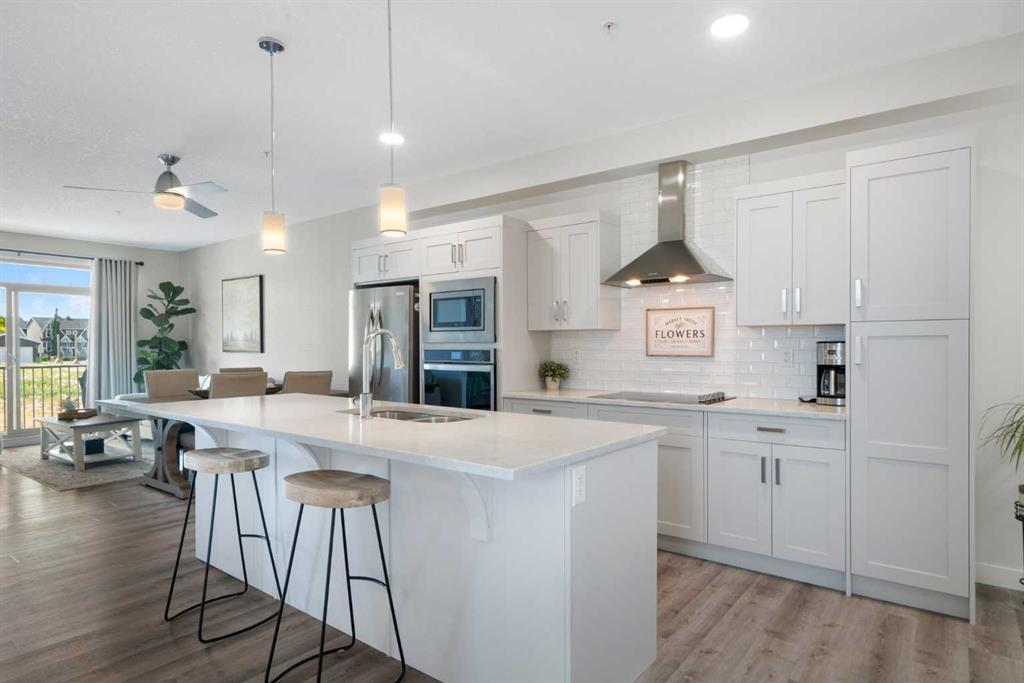 Welcome to this exceptional corner unit condo, one of the largest floor plans available in the sought-after lake community of Auburn Bay. This main-level gem offers 2 spacious bedrooms, 2 full bathrooms, and an open-concept layout designed for modern living. The heart of the home is the gorgeous gourmet kitchen, featuring a large island with quartz countertops, sleek stainless steel appliances, and built-in wall oven and microwave. Perfect for entertaining or daily life, this kitchen is a chef's dream. The primary bedroom is a true retreat, complete with a large walk-in closet, a luxurious 5-piece ensuite bathroom, and a dedicated A/C unit to keep you comfortable during Calgary's warm summer days. Step outside to your south-facing patio, which backs onto peaceful green space—ideal for relaxing with a morning coffee or an evening BBQ. This pet-friendly complex offers unparalleled convenience with walking distance to a wide range of amenities, including public transit, a dog park, grocery stores, coffee shops, pubs, and schools. You’re just a short drive from the lake, South Health Campus, and the new Seton YMCA. Additional features include an underground heated parking stall and extra storage space, ensuring all your needs are met. This condo combines comfort, style, and an unbeatable location, perfect for anyone looking to enjoy the best of Auburn Bay living.