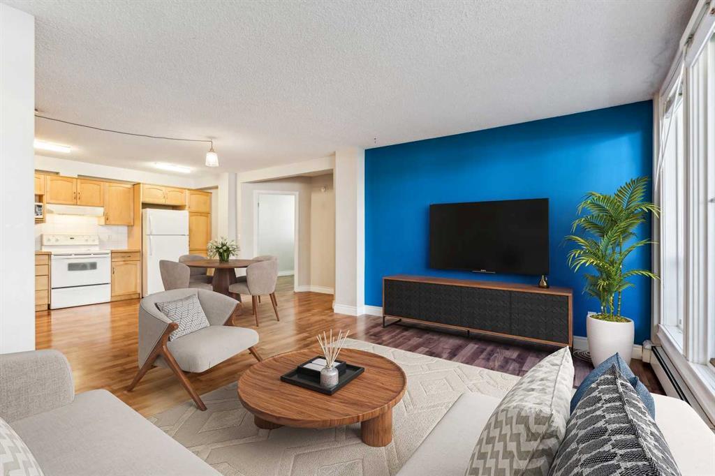 This 2 bed, 1 bath home features laminate floors throughout that make the entire space flow as one. The open floorplan ensures the light from the floor to ceiling windows casts into the entire living space, and the design allows for easy entertainment of large groups and great space for a large dining room table. The kitchen features full size appliances including a dishwasher, and plenty of counter and cabinet space. Also featured is a pantry style cabinet to allow for easy storage after a trip to the grocery store. The primary bedroom is tucked away for lots of privacy from the rest of the home, and the second bedroom can easily be used as a den, playroom, home gym or home office. There is a spacious 4-piece bath, with a large medicine cabinet and vanity for storage, and the property also features in-suite laundry. If you enjoy BBQ’ing on warm summer days, go no further than out the patio doors to the enclosed patio. This home also has one assigned, covered parking stall and a storage locker. Nestled into the trendy community of South Calgary, close to the unique shopping and restaurants of the 17th Avenue District, as well as schools, parks, and public transit. This home is in the perfect location. Amazing opportunity to own. Whether you’re a first-time home buyer, investor or downsizer, this property has everything you’re looking for. Schedule your private viewing today.