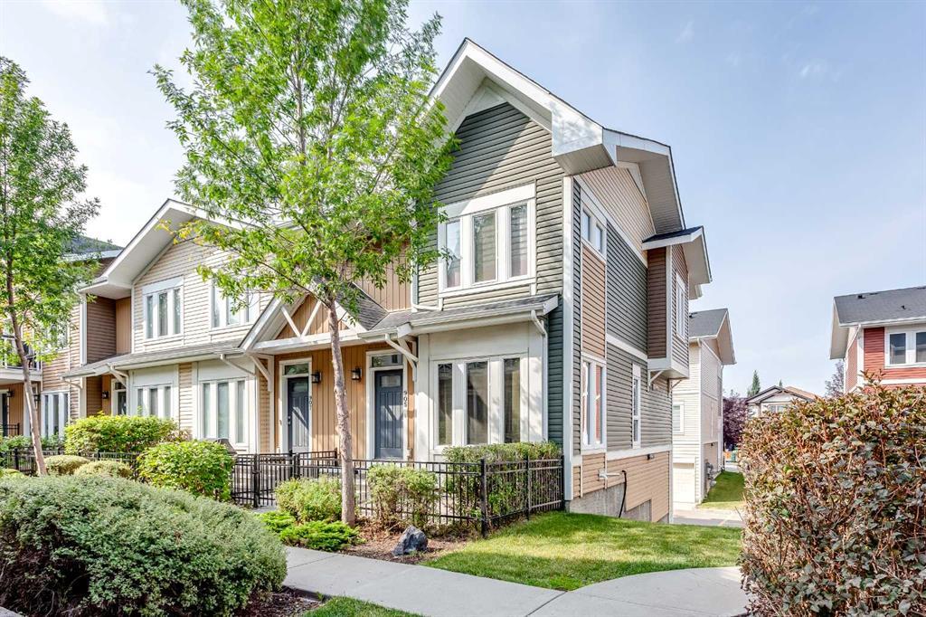 Welcome to this exceptional end-unit townhouse, designed to maximize natural light with its additional windows. This bright and airy home features 2 spacious bedrooms, each with its own ensuite bathroom, plus a convenient 2-piece powder room on the main floor, along with a variety of modern amenities. Upon entering, you'll be greeted by elegant hardwood flooring that flows seamlessly throughout the main level. The chef’s kitchen is a standout, equipped with ceiling-height cabinets, a generous island, granite countertops, stainless steel appliances, and a spacious pantry. The central dining area effortlessly links the kitchen and living room, creating an ideal space for entertaining. Upstairs, the primary bedroom accommodates a king-size bed and includes a walk-in closet and a luxurious 4-piece ensuite bathroom. The second bedroom also features a full 3-piece ensuite. Enjoy your morning coffee or summer barbecues on the cozy front patio. The lower level includes a double attached garage, a partially finished basement with additional storage space, or potential for a recreation area. Located just a short walk from South Health Campus Hospital, the lake, restaurants, shopping, and schools, this townhome offers a perfect blend of modern living and community amenities, providing a premier Auburn Bay lifestyle.