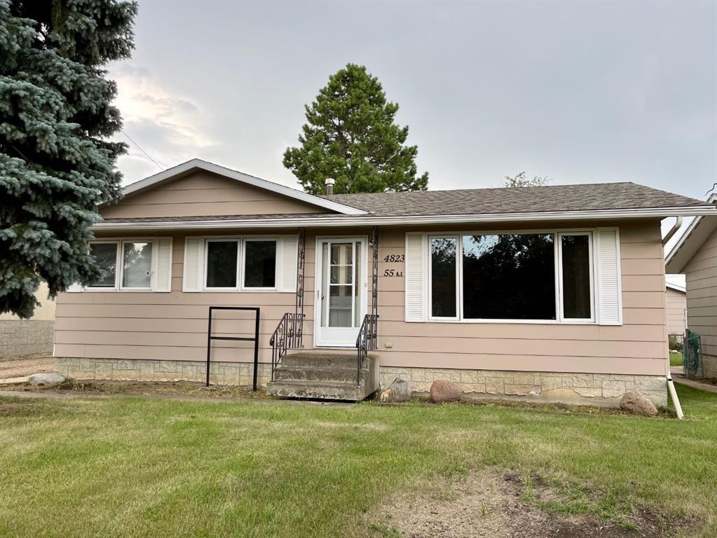 Ideally located near the golf course and sports complex in Viking, this clean and functional bungalow boasts space and potential! Upon entering the home, you are greeted with a bright white kitchen, open to the dining area for easy entertaining. The living room is very well sized, with enough space for that big sectional and flat screen tv for game and movie watching!! With 988 sq ft, there are 2 good sized bedrooms on the main floor as well as 2 in the basement… ideal with any growing family. A designated laundry room and 4 piece bathroom complete the main floor. In the basement, another huge family room is well suited for a teenage hangout or family gathering. A generous storage room and 3 piece bathroom complete the basement. Outside- the covered patio awaits for storm watching and summer sunsets! The yard is fully fenced, and offers extra storage in the shed. A heated, double detached garage is the ideal winter space for keeping the snow and cold away from vehicles- and there is room to tinker for the hobbyist.