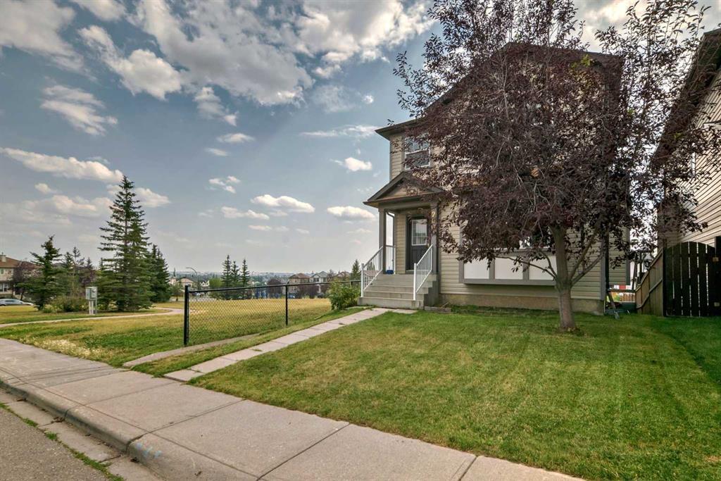 Welcome to this fabulous location with City View and right next to the park WALK-OUT basement home. Convenitly drive to shopping centers, schools, VIVO, Parks and access to Stoney Trail within a few minutes. WALKING distance to playground, bus stop and SCHOOL. This beautiful home has 3 bedroom with 2.5 bathroom above grade and finished basement with 1 ensuite bedroom(3P Bathroom) and family room. Fully renovated in 2018, with beautiful wide engineered hardwood and Vinyl floor. Newly replaced appliance in 2018 include Stove, Fridge, Washer and Dryer(Main Level) and water softer system. Water tank replaced in 2020 and basement was finished in 2022, providing plenty of spae for family or guests. South facing backyard with RV parking! Huge deck with stairs. Don't miss the opportunity to make this house your dream home.
