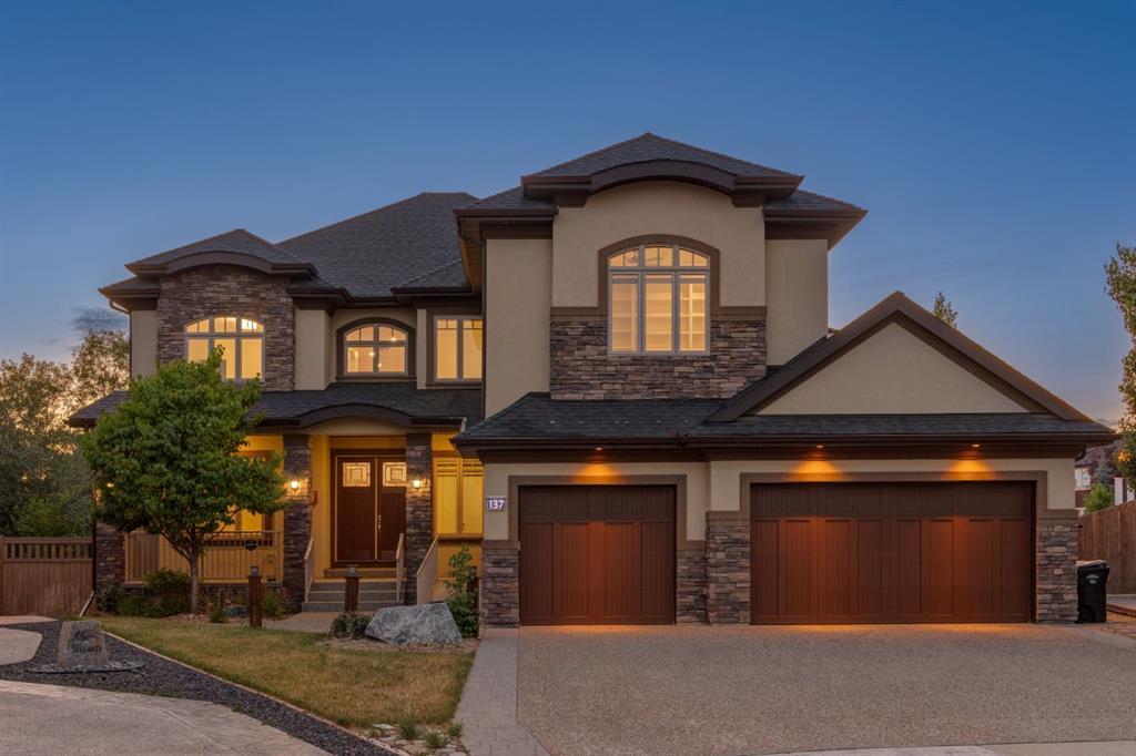 A RARE FIND in Aspen Woods…. a cul de sac of estate homes on desirable Aspen Summit Heath, a pie-shaped lot measuring 10,580 sq ft (.24 acres) with a western exposure and no neighbours in back, an engaging variety of landscape features and a volume of trees - a space you will LOVE. This home measures 5900 sq ft over three levels, with 4 bedrooms up, each with full en suites, and another two bedrooms down and an over-sized 4 car garage, with direct access to the lower level. This home is also ACCESSIBLE, with a ramp at the entrance and an elevator servicing the three levels, a home where you can age in place or provide for an aging family member. This home will easily accommodate any family. On arrival you will be struck by the quality of finishings, 9’ ceilings on all three levels, travertine flooring through the main, beautiful millwork and ceiling details, a cathedral ceiling in the living area and a gourmet kitchen, open to entertain. The kitchen features a Jenn-Air appliance package including a gas cooktop and wall oven, there is a large center island/breakfast bar, adjacent a breakfast nook with direct access to your screened deck and expansive rear yard. The main level also offers a proper dining room and two dens at the entrance, ideal for a home business. The sweeping staircase leads you upstairs to the primary retreat with its WARM western exposure and 5pc en suite, finished with granite countertops and travertine flooring. Each of the three additional beds up feature full, 4 piece en suites, with granite counters as well. The upper level also enjoys a large Bonus Room with a media wall - an inviting retreat. The lower level has been fully developed with 9’ ceilings and in-floor heat, a rec room with wet bar, a fitness room/bedroom, a media room, a 5th bedroom, also with an en suite, AND… direct access to the garage. This being a pie-shaped lot the rear yard provides an abundance of space with features including a screened rear deck, a B/I barbecue and dining space, a LARGE hot tub, a water fall and an abundance of trees… your family will love to gather here.