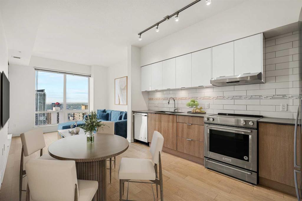 Available Immediately!! Discover your dream home in this sleek, rare, highly sought-after South-facing 1-bedroom, 1-bathroom condo in Calgary's vibrant Downtown West End. Nestled on the 29th floor, this bright and modern condo offers breathtaking city views that create a tranquil and inspiring living space. Built in 2017, this condo is designed with elegance and features an open-concept layout, premium finishes, 9-foot high ceilings, and large windows that flood the space with natural light. The condo's light color palette enhances the airy ambiance, making it the perfect urban retreat. Location is key! Situated in the heart of Calgary, this condo offers unmatched convenience with its proximity to transit, including being in the free fare C-Train Zone. You’re just steps away from the lively 17th Avenue and Kensington district, where you’ll find boutique shops, fine dining, and entertainment. Plus, you're a short walk from the serene Bow River, Princess Island Park, and numerous walking trails, offering a perfect balance of city life and nature. Residents enjoy first-class amenities such as a modern fitness center, yoga room, professional boardroom, and a cozy Owners' Lounge. The building also offers secured parking and concierge services, ensuring convenience and peace of mind. This eco-friendly and energy-efficient condo is a testament to sustainable living without compromising on style. This isn’t just a condo; it’s a lifestyle for those who crave the energy of downtown living combined with the calm of nature. Embrace this unique urban oasis today!
