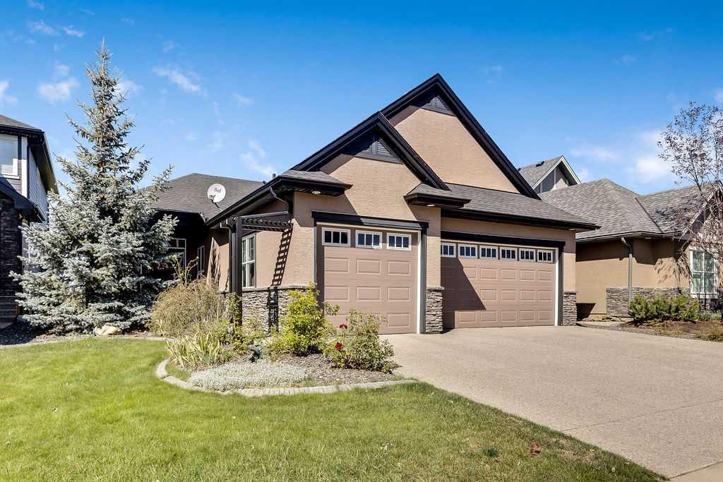**PRICE IMPROVEMENT, FULLY LANDSCAPED, MOVE IN-READY**. Presenting your hidden gem in the most desirable location in the country community of Lakes of Muirfield. This immaculate 4-bedroom bungalow is close to the city, yet country-quiet overlooking two pristine holes of Muirfield Golf Club. Inside this home, natural light floods the open concept of the formal and casual living areas sharing a unique double-sided fireplace. A modern kitchen features a massive granite island, high-end appliances, skylight, and pantry. The dining area opens on to the West facing upper deck, perfect for entertaining or casual quiet time. The main floor primary bedroom is stunning with large windows, walk-in closet, and luxurious 5-piece ensuite with heated floors. Also on the main floor is a guest room (currently used as an office) with a three-piece bathroom directly across. Off the main entrance, enjoy the den/sitting area or convert to a formal dining area, even a playroom! Downstairs, the fully finished walkout basement will be among the most welcoming you have seen. Featuring full wet bar, dishwasher, wine room, fireplace, and access to lower-level covered patio. An entertainers' dream! Two more sizeable bedrooms, a 4-piece bathroom and a massive utility room (large enough to outfit a home gym) complete the lower level. Outside, the west facing backyard features mature landscaping, two decks (with exterior stairs between) and a designated firepit area. The massive three car attached heated garage can accommodate your vehicles/workshop. On the most coveted Close in the Lakes of Muirfield, no through traffic will disturb the serenity as you enjoy your morning coffee or evening glass of wine on the deck watching the golfers go by. Only 25 minutes to YYC, 18 minutes to Strathmore. A fully landscaped truly move in ready retreat in the country community Lakes of Muirfield. Book a showing today!