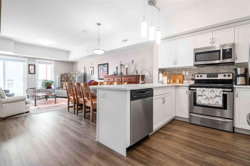 Welcome to #333, 2800 13 Ave SE – a bright and welcoming 2-bedroom, 2-bathroom condo in one of the most sought-after adult living communities, Norwood Grande. Built in 2017, this modern residence offers contemporary comfort in a highly convenient location. The functional floor plan maximizes the 849 square feet of space. Step into your well-appointed kitchen that features stainless steel appliances, stunning quartz countertops, white cabinets, a complementary backsplash, and pantry. The open-concept living and dining area bathed in natural light, feature a stylish electric fireplace and direct access to a private east-facing balcony with additional storage. The Primary Bedroom is a serene retreat with a spacious walk-in closet and a 3-piece Ensuite with a walk-in shower. An additional bedroom, a second bathroom, and a practical laundry room complete the layout. This unit includes one heated underground parking stall, conveniently close to the elevators, and access to a car wash station. Residents enjoy a wealth of amenities including recreation and game rooms with pool tables and shuffleboards, a fitness room, a library, guest suites, and a relaxing patio area. Each unit is equipped with its own air conditioner and furnace, ensuring year-round comfort. Located centrally, Norwood Grande is close to shopping, banking, grocery stores, restaurants, churches, the Connaught golf course, and much more. Fees cover all utilities, reserve fund contributions, maintenance, snow removal, and trash, making for truly maintenance-free living. Don't miss this opportunity to make this well-maintained, move-in-ready condo your new home.