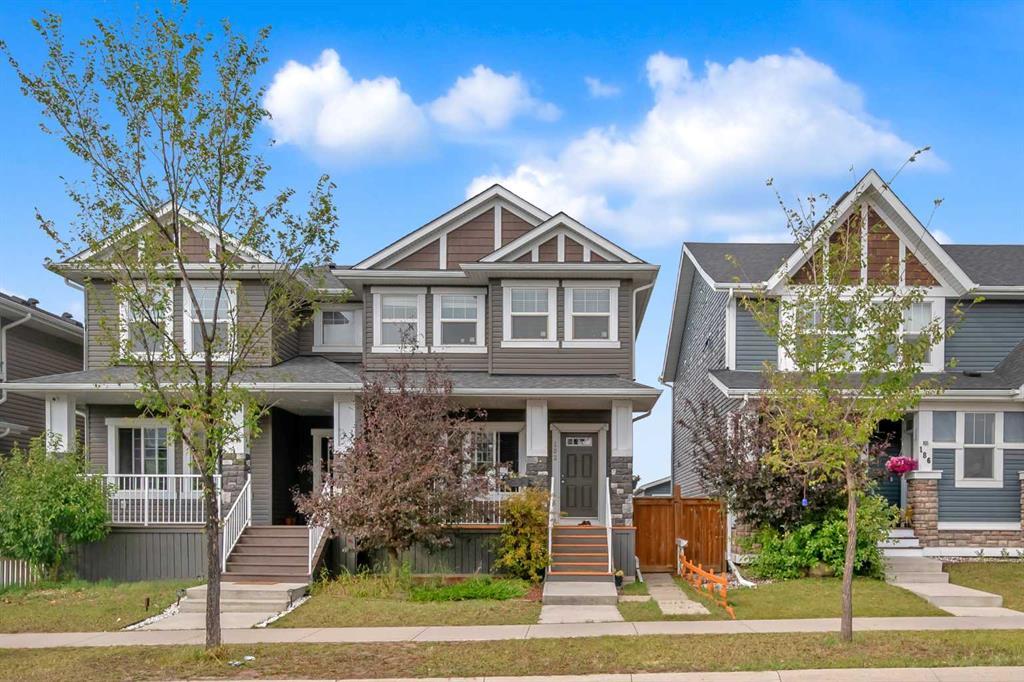 Welcome to 182 Redstone Drive, The Former Showhome is situated a few steps from the future school site and loaded with tons of upgrades including but not limited to a Front Porch, Big Windows, Hardwood Flooring, Granite Kitchen countertop, Built-in Speakers, Glass Railing, Wide Staircase, Custom Colours, Air Conditioner, Deck, Fully Landscaped Backyard.