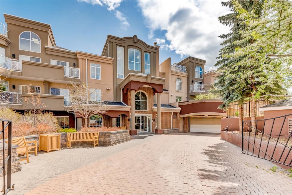 Rarely do these unique top floor units come on the market! Here is your chance to impress with this one bedroom plus den and loft unit featuring a 450 square-foot roof top patio. Upon entering the unit you will be greeted with an open floor plan showcasing the high ceilings and large windows. Enjoy your kitchen with fresh professionally painted cupboards, new hardware and breakfast bar. Along with the kitchen the main floor of this unit offers a dining room area, living room with corner gas fireplace and a convenient West facing balcony overlooking the gated entrance. You will also find a large primary bedroom, a four piece bathroom, a large den which could be used as a bedroom and a large storage room with a stackable washer and dryer. Moving up to the second level you will find a bright loft area which could be used as an office, bonus room or your creative space. The loft leads out to a 450 square-foot rooftop patio which offers complete privacy with South and West exposures. You will also find a large storage room great for those winter tires! Located in the heart of Calgary, close to all amenities and transit, Bella Vista is pet friendly, offers assigned underground parking, visitor parking and a party room for resident use.