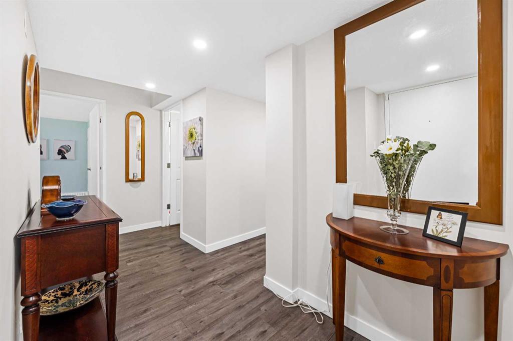 This phenomenal location, just steps away from Uptown 17th Ave SW and brisk 10-min walk to Marda Loop, provides a plethora of options for shopping, services, restaurants, bars, lounges, pubs, public transportation, groceries (Save on Foods, Midway Co-op & Safeway) and more. Neatly tucked away a fair distance from the street, behind a majestic wall of mature trees this complex - Cameron Court - offers a setting that is unique to most buildings in the area. Sitting proud as you approach the front steps you admire the brick facade that runs five stories up and wraps around the entire complex. The unit and its assigned "out-of-suite storage" reside on the main floor level of the complex for great accessibility. The home provides various designated spaces for those who love the organization of compartments - dedicated living room, dining room, breakfast nook and two bedrooms situated well away from the main living are for maximum privacy. At 1,300 sq.ft. you immediately notice the large bedrooms and yet you still have room for a laundry room and spacious in-suite storage room. The living room offers large windows looking out to a beautiful landscape of lush greenery. You will notice an electric fireplace in the living room with a flame display that's the perfect accompaniment for those calm, serene evenings. The living room opens onto a spacious dining room that accommodates a dining suite for 6 guests (perhaps even 8). The kitchen has been updated with great functionality in mind - drawers and pantry system. The nook area creates flexible space that can be used as nook area, workstation or cozy TV room for one (or two). Lots of updates throughout, including new bathrooms in 2018, New kitchen in 2019, blinds package, vinyl plank flooring throughout for a continuous flow, updated lighting package, new knock-down painting ceilings throughout and fresh coat of paint. Other features include an assigned underground parking stall, two storage units (one out-of-suite, one inside the suite), bicycle storage + more. Building amenities include an exercise room, lounging/billiards are and roof top patio to inhale the panoramic views from this peak. A must see!