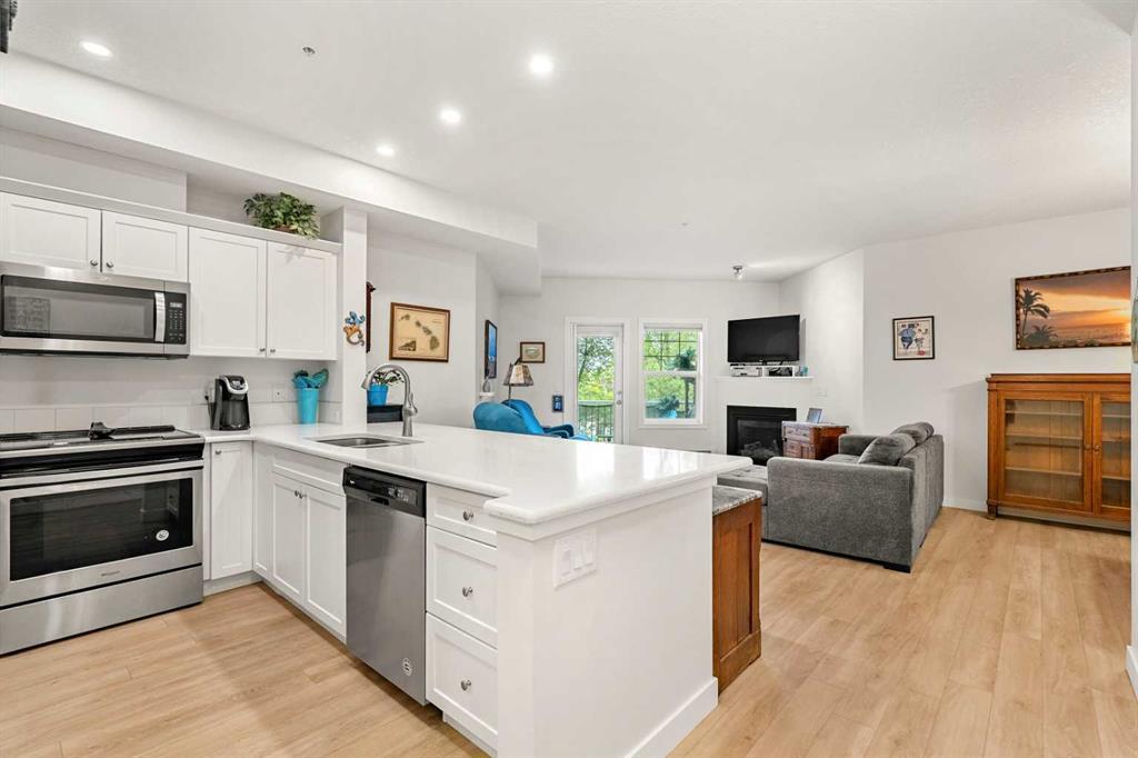 The kitchen boasts stainless steel appliances, soft-close drawers and cabinets, and beautiful quartz counters that flow into the open living and dining area. Relax by the cozy gas fireplace or step out onto your balcony, where you can enjoy some fresh air. Ample storage is provided with extensive shelving in the built-in cabinets, walk-in closet and laundry cupboard, keeping everything organized and within reach.