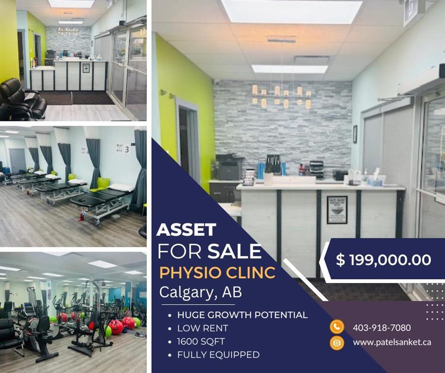 This is a unique opportunity to acquire the assets of a thriving physiotherapy practice in the heart of Calgary. Renowned for exceptional patient care and a comprehensive range of services, including chiropractic, massage, acupuncture, and acupressure, this clinic has built a solid reputation and a loyal client base. Situated in a high-traffic area, the facility is in excellent condition, equipped with modern treatment rooms, state-of-the-art equipment, a well-equipped gym, and a spacious reception area. With minimal overhead costs and a highly competitive lease, this asset sale presents an ideal opportunity for a physiotherapist or investor to step into a well-established practice in a growing community.