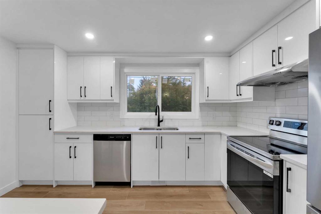 Fully Renovated | Illegal Basement Suite | 5 BED + 2 BATH | Detached Garage | West Backyard | 162 ft deep lot (massive backyard) | Highly Sought-After Neighbourhood Welcome to this renovated duplex in the well-established community of Queensland. Featuring an illegal basement suite and a single car garage, this home is designed for modern comfort and convenience. This fully-renovated 5-bedroom, 2-bathroom house is perfect for any investors or first time buyers with its fully finished illegal basement. On the main floor, the spacious living room with a fireplace, with its expansive window, floods the space with natural light, creating an inviting atmosphere perfect for relaxation or entertaining guests. Adjacent to this space is a beautiful outdoor balcony, offering a serene spot to unwind and soak in the evening sun. The kitchen is equipped with newer cabinets, ample counter space, modern appliances and an island perfect for any chefs/cooks. Down the hall you will find a stacked laundry adjacent to a 4pc bathroom. Three generously sized bedrooms, with ample closet space, complete the main floor, providing ease and practicality for daily living. Descend to the lower level and discover a highly practical layout designed for versatility. This level offers flexible living arrangements and great opportunities. There is a large living space here. The fully equipped kitchen, adds to the functionality of this space. Two spacious bedrooms, a utility room with an additional set of laundry machines, and space for storage enhances the flexibility of the basement. This level also includes a 4pc bathroom. Outside, you will find a single car detached garage and an expansive back yard. This property is conveniently located near an off-leash dog park, public transportation, shopping areas, restaurants, and more. Experience the perfect blend of comfort, accessibility , and modern living in this delightful home. Book a showing today!