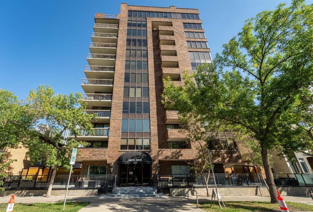 Welcome to this very bright and large corner unit in a quiet and well-managed building! As you walk past the hallway you are embraced by a sunny open space with the living, dining and kitchen joined together creating a warm & welcoming atmosphere. Enjoy the morning coffee or the evening supper on the generous south and west facing wraparound balcony all alone or with family and friends. The living room features a cozy wood burning fireplace with integrated gas log lighter, great during the winter months. There is a large master bedroom with access to the 4-pcs bath and a good size walk-in closet. The second bedroom could be used as an office as needs be. And you’re going to love the convenient and large in-suite laundry and storage room. For your convenience, on the twelfth floor, the building has a fitness room coupled with a game/meeting/party room, a sauna, and a large patio with an amazing West view of the city. And on the ground floor there is a secure bike storage room. The heated and secured underground parking lot features spots large enough to permit personal sheds for additional storage (Board approval is required). Located in the heart of Beltline, on a quiet street, you are very close to plenty of shopping, restaurants, great coffee shops, and steps away from urban park green space such as Barb Scott Park (that features a skating rink in winter) and the bustling Tomkins Park on 17th Ave. City playgrounds, transportation and tennis courts are all nearby. Easy walking distance to the downtown office core any time of the year. Don’t miss this opportunity, come and see for yourself!