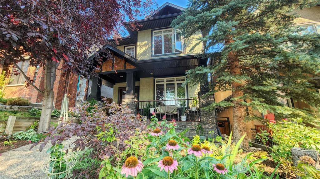 Detached, 2.5 storey home with over 2800 of living space on a wide lot. A welcoming front porch opens to the spacious front foyer, flex room and main floor featuring 9 foot ceilings and hardwood floors. Open concept floor plan; spacious kitchen with full height, interior lit cabinetry, large centre island, gas stove, walk in pantry and classic mosaic tile. A dining room and family room with a gas burning fireplace completes this level. Well-arranged upper floor has a large primary bedroom, 5 piece en-suite, walk-in closet plus 2 more generous bedrooms. Great, large laundry room set up with washing basin which makes this chore a breeze. Terrific third floor; bright loft space with over 340 sq.ft., perfect for an additional family room or enormous office. Professionally, fully finished basement with in floor heat, fourth bedroom, 4 piece bath and an ideal media/games room equipped with a great entertainment bar! Fully landscaped and treed lot. Enjoy morning coffee or unwind in the private rear yard with aggregate terrace and lush landscaping. Well located on a quiet street, great inner city location, minutes to downtown, City Parks and the Bow River pathway system. Other noteworthy attributes include: 2023 Tankless on Demand Water Heater, Media System throughout, newer Garage Shingles, House Shingles approx. 8 years old.