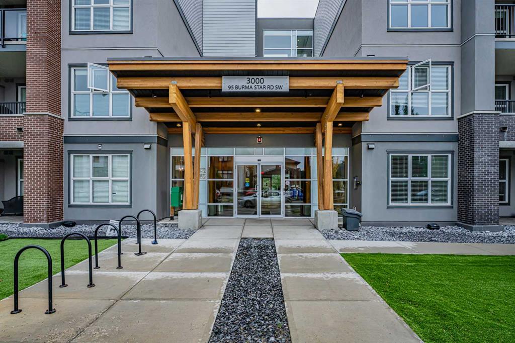 Welcome to the Axess building in the historic Currie Barracks community! This stunning 1 BED + DEN unit boasts soaring 12-foot ceilings and a south-facing view overlooking lush greenery. As you enter, you’ll be greeted by luxury vinyl plank flooring and an abundance of natural light pouring in through oversized windows and the impressive 12-foot ceilings. The well-appointed kitchen features a refreshing blend of crisp white and dark cabinetry, upgraded stainless steel appliances with a gas stove, quartz countertops, and a designer tile backsplash. An open counter seamlessly connects the kitchen to the dining area. The spacious living room offers access to the balcony, equipped with a gas BBQ line and providing fantastic, unobstructed views to the south—an ideal spot to unwind and enjoy breathtaking sunsets. The greenery surrounding the balcony enhances the south-facing views, making them even more captivating. Additionally, an AC unit has been installed and roughed in to keep the unit comfortably cool during warm weather. The generously sized primary bedroom includes a walk-through closet and an access door to the elegant 4-piece bathroom, complete with tile flooring, quartz countertops, and a soaker tub. A convenient second bedroom/den located across the hall serves perfectly as a guest room or office space. This gorgeous unit also features in-suite laundry, underground parking with a car wash, and a storage locker in front of the stall. Situated in a prime location, you’ll be just steps away from Mount Royal University, parks, paths, shopping, and have quick access from Crowchild to Marda Loop and the downtown core. Truly, a wonderful place to call home.