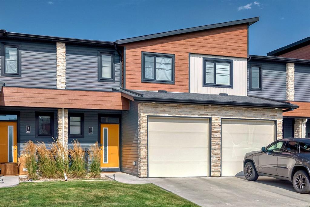 Highly desirable and unique west side townhouse condos in SKYE. These great units don't come up often so if you have been waiting for one to come to market don't hesitate and call your realtor today! This unit is ready for quick possession and is the popular two primary bedroom upper floor plan. A great layout no matter how you use it - a rent generator with two large primary bedrooms with ensuites, or the perfect layout for you and your guests. The main floor offers great room living, with dining, living area and even a main floor powder room. The full kitchen is ideal for great entertaining including both a built in wall oven and a microwave, glass cook top, large fridge, all stainless, quartz countertops, and lots of cabinetry for storage. A private back patio stepping on to lawn area you don't have to cut as all the exterior landscaping and year round maintenance is covered in your low condo association fee. If all that wasn't enough there is even an unfinished full basement waiting for your custom development, your own off street parking driveway space leading into your attached single garage. Beautiful parks and bike pathways, schools, shopping, restaurants, public transit and more right out your door. No wonder these great SKYE townhouse condo's rarely come to market - so much to love about living here! Make SKYE your new easy living home!