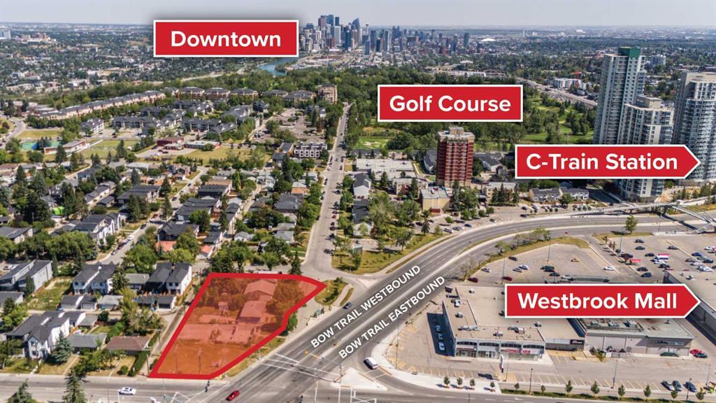 Fully consolidated Mixed use site 32,000 ft2 total. Land Use M-U1 FAR 3.0 H22. Shopping and C-train directly across the street. The Bow trail corridor connects the affluent west Calgary suburbs to the downtown core, making this site an excellent mixed use commercial residential opportunity.