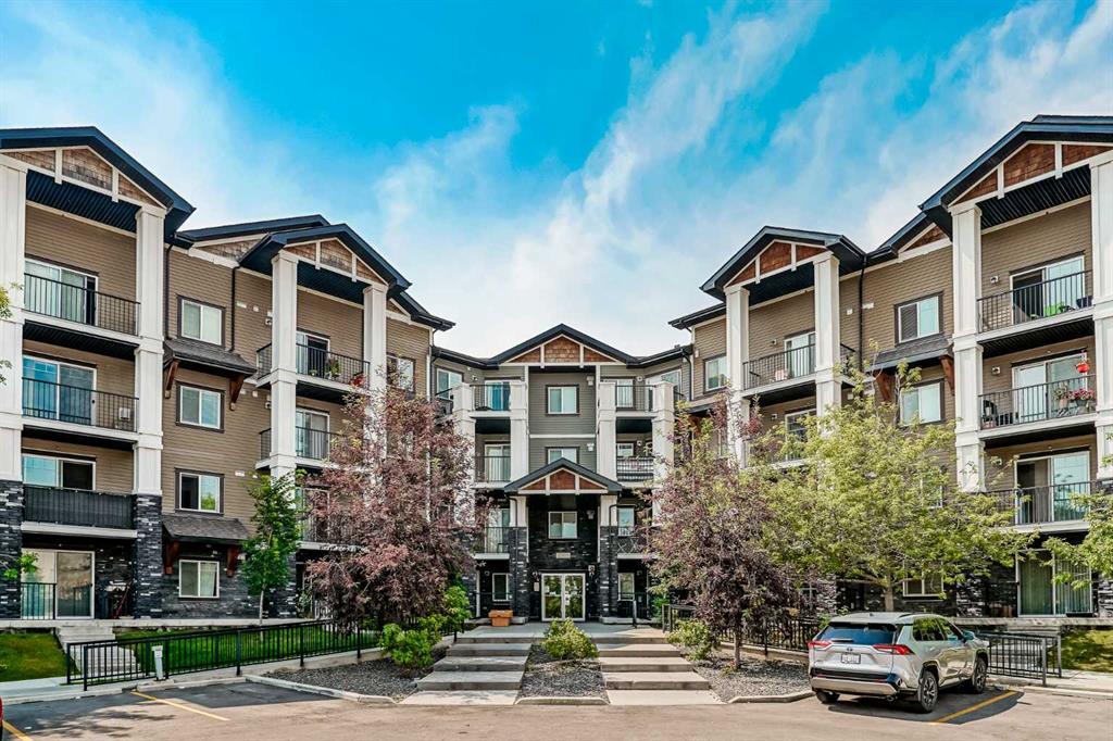 This well-maintained condo features 1021 sq. ft. of living space with two titled parking stalls (one underground and one outside stall) and an underground storage locker. It offers two large primary bedrooms with walk-in closets and ensuite bathrooms. Hardwood floors spread throughout much of the main living areas, including a work area, dining area and the spacious living room. You can access a balcony with enough space for your patio furniture from here. The white kitchen is timeless and has an abundance of space and a rare corner pantry. There is also a tremendous in-suite laundry room with room for storage. The property has been professionally cleaned and freshly painted, ensuring it's move-in ready for quick possession. Conveniently located within walking distance to schools, a lake, playground, restaurants, Save-on-Foods, Tim Hortons, and other amenities. Easy access to downtown, the airport, and Stoney Trail.