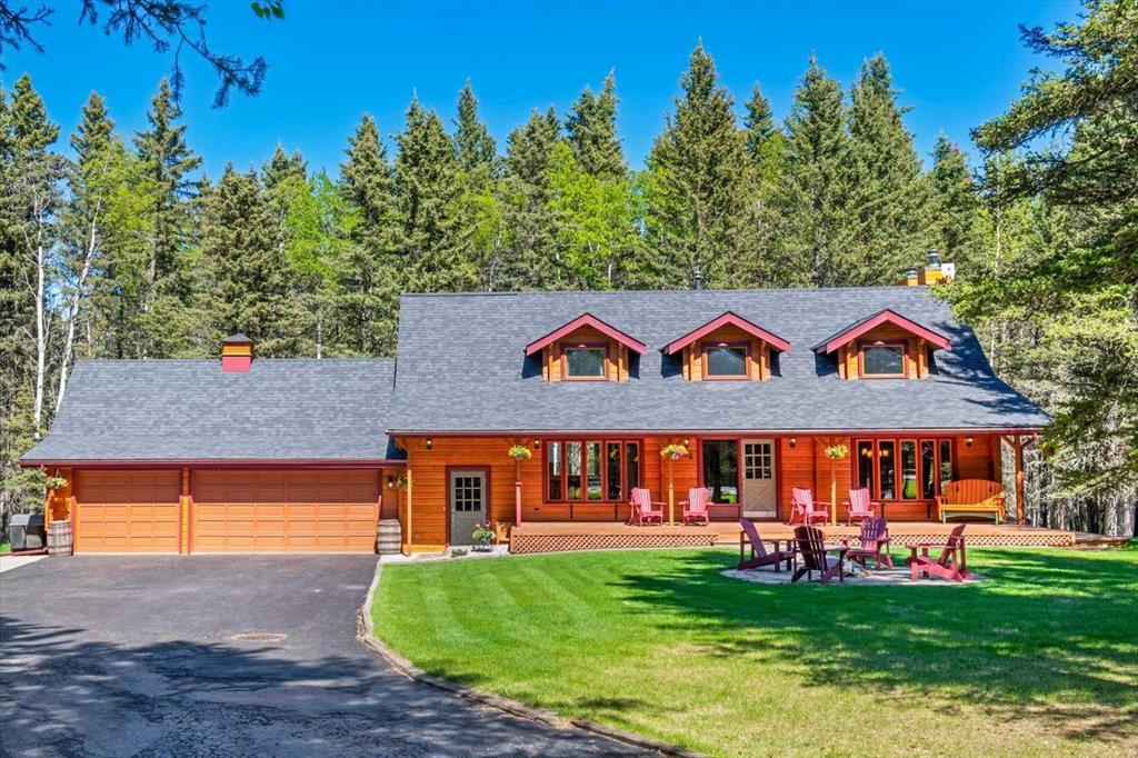 COMING SOON ON AN EPISODE OF COUNTRY HOUSE HUNTERS CANADA!!! This sensational acreage is on one of the most sought-after lots in Wintergreen, perfectly situated with frontage on the pristine golf course and backing onto municipal reserve. This immaculately maintained property showcases the craftsmanship and beauty of cedar log construction while offering every modern convenience, including WHEELCHAIR ACCESSIBILITY and a POOL HOUSE WITH INDOOR POOL! Exemplifying country charm, a paved driveway leads through towering spruce to the picturesque residence, featuring dormer windows above a sprawling covered front porch. An attached TRIPLE CAR GARAGE is oversized and heated, providing space for 3 cars PLUS WORKSHOP! Lush green lawns and a firepit with a stone patio surround complete the front views, while to one side sits the enticing pool house. This entertainer's dream contains an 8' deep kidney-shaped pool with natural stone decks, changing areas, and an ACCESSIBLE LIFT! The main residence offers versatile spaces with large gathering areas and quiet hideaways. The foyer (With hardwood stairs featuring a STAIR LIFT! Seller will remove if requested.) grants views across refinished cherry hardwood floors to the gracious dining room with vaulted ceilings and a window seat, and beyond to the warmth of the living room with it's stone, wood burning fireplace. The farmhouse kitchen offers a massive butcher block island, gas stove, slate countertops, and a bay window above the sink, overlooking the expansive back deck (New in 2022) with two stair accesses to the backyard and the beauty of the wooded lot and forest reserve beyond. Open to the kitchen is an impressive casual dining area with room for a harvest table, a window seat, and a built-in desk. Additional highlights of the main floor include a mudroom with heated tile floors, a WHEELCHAIR LIFT (Seller will remove if requested.), main floor laundry, and an ACCESSIBLE BATHROOM WITH ROLL-IN SHOWER (Perfect for a DOG WASH too!)! The upper level features the primary suite with a PRIVATE SITTING ROOM/OFFICE, a 5-pc ensuite, and TWO WALK-IN CLOSETS. The upper bonus room is the ideal place to relax and connects two more spacious bedrooms (One with an ADORABLE LOFT!) and a 4-pc bath. The lower level features an open office overlooking a large family room with a gas fireplace, a gym/hobby room, a 3-pc bath with additional laundry hookups, and a spacious bedroom—perfect for guests! This exceptional property combines rustic elegance, modern convenience, and unparalleled beauty, making it the perfect haven for those pursuing the call of country living.