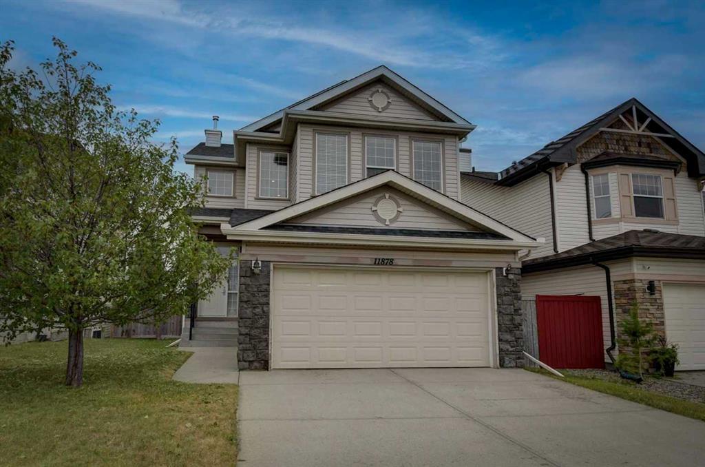 Welcome to this beautiful home located in the heart of growing community of Coventry Hills. The owners are original owners and they have a proud of this beautifully maintained home. As you step inside this functional two story home, you will be greeted by the high open ceiling with spacious foyer and formal dining area. The open and modern kitchen boasts with cabinets as well as a pantry area. The main floor features hardwood floors with formal dining area along with spacious living room with bright sunshine from the south backyard. The new sets of blinds in the living-room are another new addition to already pristine condition home. The main bathroom along with the conveniently located laundry room is another accent to this beautifully laid out home. The second floor welcomes with a large bonus room where you can relax and it is accentuated with a high ceiling. A huge master bedroom is equipped with a separate closet area and a tub with Jacuzzi, large countertop with the spacious sink and powder sink. The two other bedrooms are quite spacious and 4 piece bathroom would be a perfect fit for the growing family. This lovely show-home condition house is spotless and an excellent location for a family.