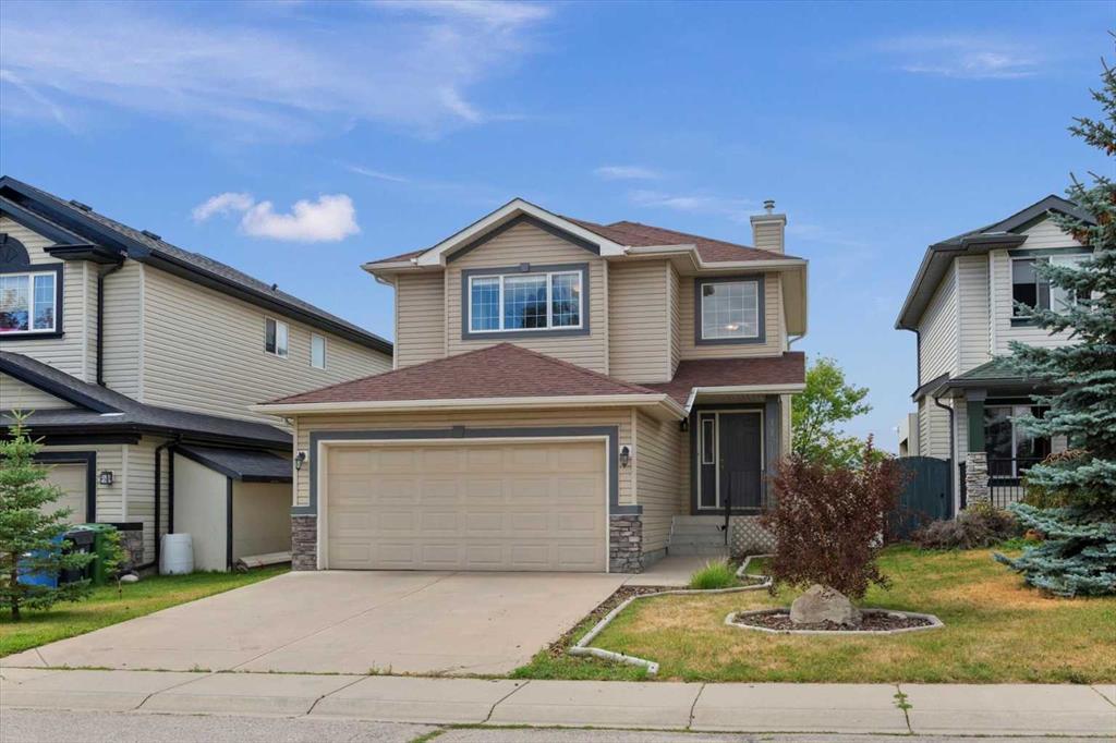 Nestled on a charming, established street within the community of Citadel, this residence offers breathtaking mountain views,, and a spacious layout, ready for your personal touch. The open-concept foyer and an arched entryway leads you to a brightly lit living room, inviting warmth and comfort. Adjacent to this space, the kitchen features maple veneer cabinetry, a breakfast bar perfect for your morning coffee, and well-maintained appliances including an electric stovetop for everyday cooking needs. A full pantry enhances functionality and provides ample storage. The central dining nook, is perfectly integrated within the kitchen, and features sliding glass patio doors that effortlessly open to a potential-filled backyard oasis. On the main level, you'll find a convenient two-piece powder room with direct access to the laundry room, which is ready for the addition of a washer and dryer. From this area, you can also easily access the double attached garage. Upstairs, the generously sized primary bedroom boasts large windows and a spacious closet. The primary ensuite is thoughtfully designed with a dedicated makeup area, single vanity, and a shower-tub combination. Two additional bedrooms are located on this level, along with another four-piece bathroom, making it ideal for your children or visiting family members. The partially finished basement offers a fantastic space for a playroom. Complete with PEX plumbing and rough-ins for future development by the new owners. With its stunning mountain backdrop and convenient access to major roadways such as Country Hills Boulevard, Sarcee Trail, and Stoney Trail, this home is ideally situated. It presents an excellent opportunity for a family seeking a comfortable and welcoming space in a delightful neighborhood or for those looking to invest.